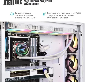 Комп'ютер ARTLINE Gaming X98WHITE (X98WHITEv77) є потужною ігровою системою, яка забезпечить неперевершену продуктивність у найвибагливіших іграх та додатках. Він оснащений 8-ядерним процесором AMD Ryzen 7 9800X3D з тактовою частотою до 5.2GHz, що робить його ідеальним вибором для багатозадачності та інтенсивних обчислень. Відеокарта GeForce RTX 5090 з 32GB пам'яті забезпечить чудову графіку та плавність гри. Для охолодження системи використовується 360 мм водяне охолодження, а корпус QUBE ORION оснащений трьома вентиляторами з RGB підсвічуванням для оптимальної циркуляції повітря. Крім того, система має 32GB DDR5 оперативної пам'яті та 1TB SSD накопичувач, що гарантує швидку завантаження та чудову чуйність. Безпека та довговічність також продумані — загартоване скло на бічній панелі та пилові фільтри на верхній та передній панелях забезпечують чистоту та захист від пилу. Бездротові технології Wi-Fi 802.11ac|ax та Bluetooth 5.3 роблять підключення до мережі та периферійних пристроїв зручним та швидким.