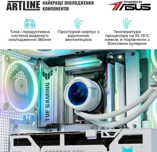 Комп'ютер ARTLINE Overlord BTF (BTFv16) – ультимативний ігровий ПК з 16-ядерним процесором AMD Ryzen 9 9950X3D та відеокартою GeForce RTX 5070 Ti 16GB WHITE для максимальної продуктивності в іграх та стримінгу. 32GB оперативної пам'яті DDR5-6000 RGB та швидкий SSD 2TB NVMe Gen4 забезпечують моментальний відгук системи та комфортну роботу з будь-якими завданнями. Преміальна система водяного охолодження 360 мм та блок живлення 1000W 80+ Bronze гарантують стабільність під тривалими навантаженнями. Стильний білий корпус ASUS із загартованим склом та яскравим RGB-підсвічуванням підкреслює преміальний статус системи, а вбудовані модулі Wi-Fi 802.11be та Bluetooth 5.4 забезпечують сучасний бездротовий зв'язок. Операційна система не встановлена, що дозволяє вибрати оптимальний варіант під свої завдання.