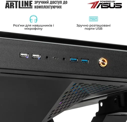 Комп'ютер ARTLINE Overlord DESK Windows 11 Pro (DESKv01Win) — це високопродуктивний ігровий і кастомний ПК, інтегрований в корпус-стіл, оснащений 8-ядерним процесором AMD Ryzen 7 9800X3D 4.7-5.2 ГГц, потужною графікою NVIDIA GeForce RTX 5080 16 ГБ, 64 ГБ високошвидкісної DDR5-6400 пам'яті та швидким SSD 2TB M.2 NVMe. Система охолоджується премиальной 360-мм СВО, працює на базі материнської плати ROG STRIX X870-F GAMING WIFI, має розширені можливості підключення (включаючи LAN 2.5 ГБ, Wi-Fi 7 і Bluetooth) і надійний блок живлення STRIX 1000W 80+ Gold. Підходить для топового геймінгу, професійних завдань та ентузіастів, які цінують продуктивність та унікальний форм-фактор.