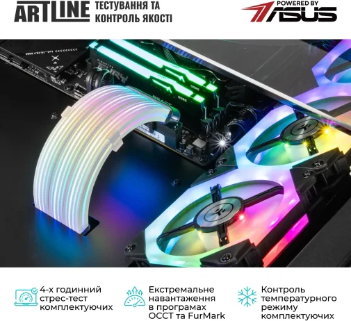 Комп'ютер ARTLINE Overlord DESK Windows 11 Pro (DESKv21Win) — це високопродуктивний ігровий і кастомний ПК, інтегрований в корпус-стіл, оснащений 24-ядерним процесором Intel Core Ultra 9 285K 3.2-5.7 ГГц, потужною графікою NVIDIA GeForce RTX 5090 32 ГБ, 96 ГБ високошвидкісної DDR5-6400 пам'яті та швидкими SSD 2TB + 2TB. Система охолоджується премиальной 360-мм СВО, працює на базі материнської плати TUF GAMING Z890-PRO WIFI, має розширені можливості підключення (включаючи LAN 2.5 ГБ, Wi-Fi 7 і Bluetooth) і надійний блок живлення 1200W 80+ Gold. Підходить для топового геймінгу, професійних завдань та ентузіастів, які цінують продуктивність та унікальний форм-фактор.