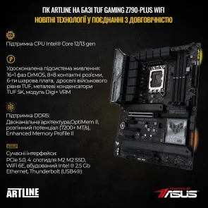 Комп'ютер ARTLINE Overlord GT502 (GT502v77w) - потужний ігровий системний блок у білому корпусі ASUS TUF Gaming GT502 з RGB-підсвічуванням та загартованим склом. Оснащений 24-ядерним процесором Intel Core i9-14900KF (8 продуктивних та 16 енергоефективних ядер) з тактовою частотою від 3.2 до 6.0 ГГц, що забезпечує відмінну продуктивність у сучасних іграх та додатках. Система водяного охолодження Premium 360 мм підтримує оптимальну температуру компонентів. Оперативна пам'ять об'ємом 64 ГБ DDR5-6000 гарантує швидку роботу багатозадачних програм. SSD-накопичувач об'ємом 2 ТБ M.2 NVMe Gen4 забезпечує блискавичне завантаження операційної системи та програм. Відеокарта NVIDIA GeForce RTX 5070 Ti з 16 ГБ відеопам'яті справляється з найвибагливішими графічними завданнями. Модульна конструкція корпусу та індивідуальне кольорове обплетення кабелів надають системі стильного та акуратного вигляду. Пиловий фільтр на верхній панелі та ручки для перенесення додають зручності в експлуатації. Блок живлення потужністю 850 Вт із сертифікацією 80+ Bronze забезпечує стабільне живлення всіх компонентів. Комп'ютер оснащений сучасними інтерфейсами: 2xUSB 3.2 Gen1, 1xUSB 3.2 Gen2 (Type-C), аудіороз'єми, 1xDisplayPort, 1xHDMI, 2xWi-Fi 6, 1xIntel 2.5Gb Ethernet, 1xUSB 3.2 Gen, 1xUSB 3.2 Gen 2 (Type-C), 4xUSB 3.2 Gen 1 (Type-A), 3xAudio jacks. Підтримка Wi-Fi 802.11ac|ax та Bluetooth 5.3 забезпечує бездротове підключення. Габарити: 450x285x446 мм. Вага: 20 кг. Гарантія: 38 місяців. Комплектація: комп'ютер, технічний паспорт, кабель живлення.