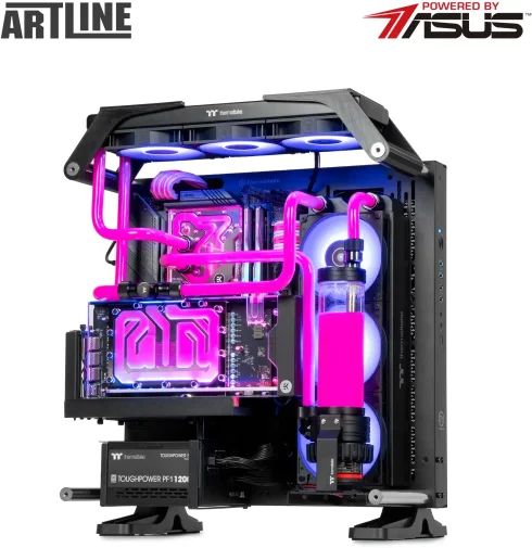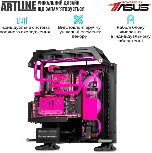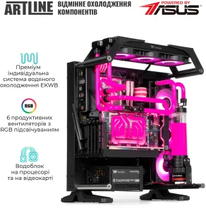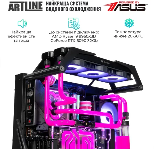Комп'ютер ARTLINE Overlord P99 Windows 11 Pro (P99v84Win) – це флагманський ігровий системний блок, створений в Україні із застосуванням топових комплектуючих. Оснащений 16-ядерним процесором AMD Ryzen™ 9 9950X3D (4.3–5.7GHz) із кастомною системою водяного охолодження EKWB Water Cooling Premium, що гарантує стабільну роботу під навантаженням. Відеокарта NVIDIA® GeForce® RTX 5090 з 32GB пам'яті забезпечує максимальну продуктивність у сучасних іграх та професійних завданнях. Оперативна пам'ять обсягом 96GB стандарту DDR5-6400 і два надшвидкі NVMe SSD Gen5 по 2TB (сумарно 4TB) забезпечують блискавичну швидкість роботи та зберігання даних. Материнська плата ROG STRIX X870E-E GAMING WIFI підтримує всі актуальні інтерфейси, включаючи Wi-Fi 802.11be, Bluetooth 5.4 та мережну карту 5Gb. Корпус Thermaltake Core P3 TG із загартованим склом 5мм та RGB-підсвічуванням надає стильного вигляду, а блок живлення 850W 80+ Gold гарантує стабільність. Система охолодження включає 6 RGB вентиляторів, що забезпечує ефективний тепловий режим. На борту встановлена Windows 11 Pro, у комплекті – ПК, техпаспорт та кабель живлення. Гарантія – 38 місяців.