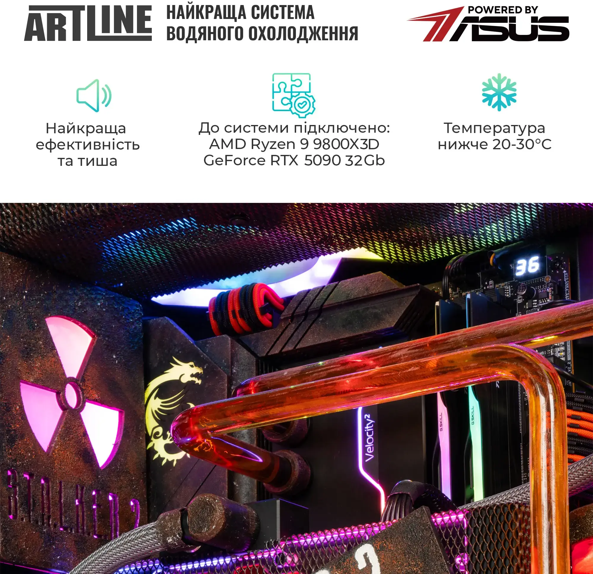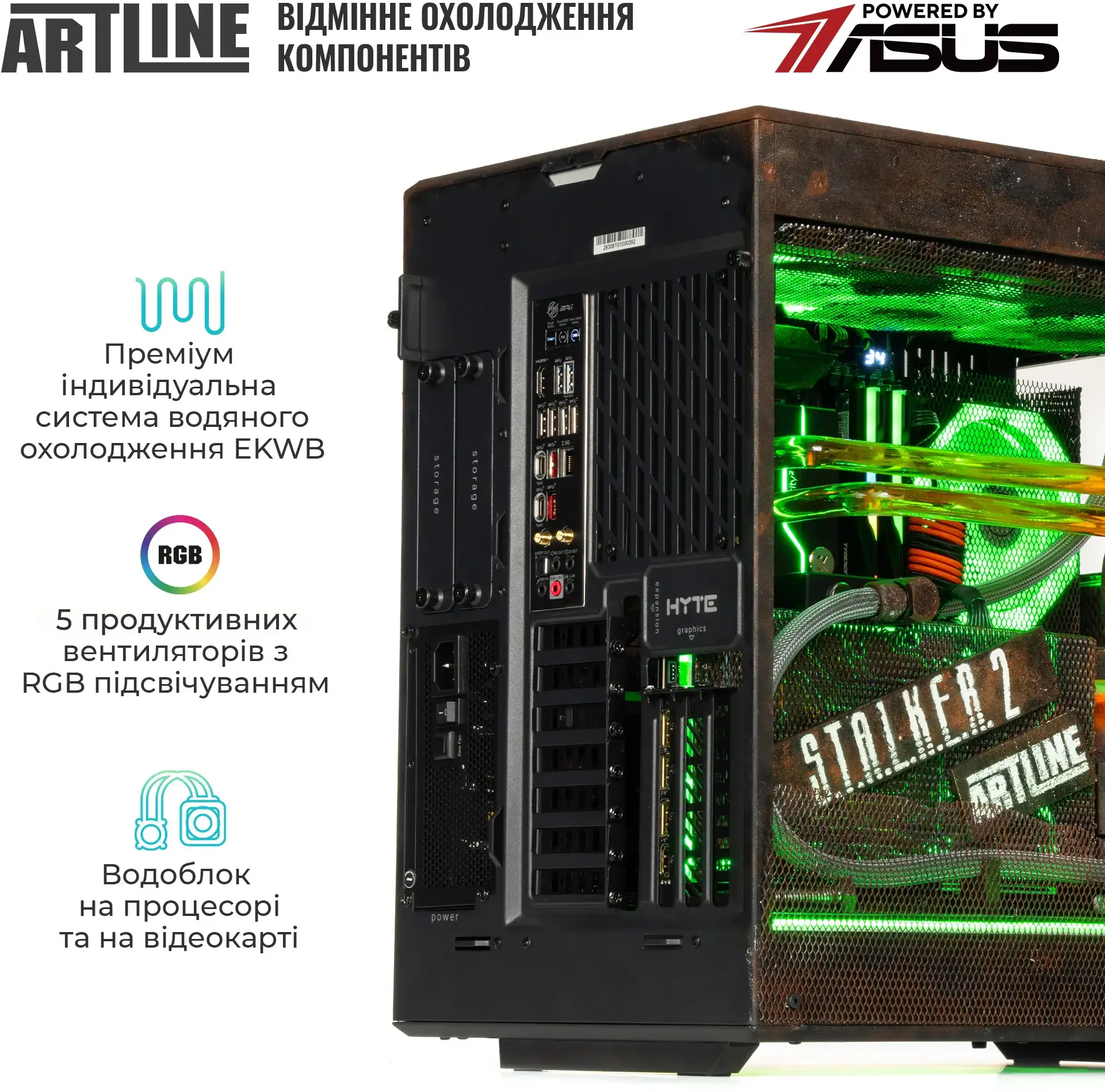 Комп'ютер ARTLINE Overlord STLKR Windows 11 Pro (STLKRv42Win) – це флагманський ігровий та кастомний ПК українського виробництва, створений для максимальної потужності та стабільності. В основі системи – процесор AMD Ryzen™ 7 9800X3D з 8 ядрами та частотою до 5.2 ГГц, що охолоджується кастомною системою водяного охолодження EKWB Water Cooling Premium. Встановлено 96 ГБ високошвидкісної оперативної пам'яті DDR5-6400, а для зберігання даних передбачено два NVMe SSD по 2 ТБ (Gen5), сумарно 4 ТБ. За графічну продуктивність відповідає найновіша відеокарта NVIDIA® GeForce® RTX 5090 з 32 ГБ пам'яті, яка забезпечує топову швидкість рендерингу та комфорт у будь-яких іграх чи професійних завданнях. Материнська плата ROG CROSSHAIR X870E HERO на чіпсеті AMD X870E підтримує всі сучасні інтерфейси, включаючи USB4, Wi-Fi 7 та Bluetooth 5.4. Корпус Hyte Y60 Custom з RGB-підсвічуванням та вентиляцією оснащений 5 вентиляторами з LED-підсвічуванням, а надійний блок живлення на 1600 Вт із сертифікатом 80+ Gold гарантує стабільність при високих навантаженнях. ПК укомплектований ОС Windows 11 Pro, має розширений набір портів, включаючи USB 3.2, HDMI, DisplayPort та аудіороз'єми. Гарантія – 38 місяців.