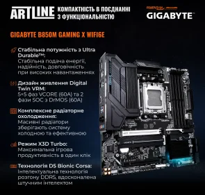 Рабочая станция ARTLINE WorkStation W78 (W78v40) – продуктивне рішення для професійних завдань, що поєднує в собі потужне апаратне забезпечення та надійну роботу під час інтенсивних навантажень. Оснащена процесором AMD 8-core Ryzen 7 9700X 3.8-5.5GHz та відеокартою NVIDIA RTX PRO 2000, яка дозволяє ефективно вирішувати професійні завдання. Обсяг оперативної пам'яті становить 64 GB DDR5-6000, що забезпечує стабільну роботу в багатозадачному режимі та під час роботи з великими проєктами. Для зберігання даних передбачено 2TB M.2 NVMe, що забезпечує швидкий доступ до файлів і системи. Материнська плата GIGABYTE B850M GAMING X WIFI6E забезпечує стабільну роботу та можливості для розширення. Блок живлення 650W 80+ Bronze відповідає за надійне енергопостачання всіх компонентів. Корпус QUBE GALAXY WS выполнен в сдержанном современном стиле с сетчатой передней панелью для эффективной вентиляции. Боковая панель из закаленного стекла толщиной 4 мм позволяет продемонстрировать внутренние компоненты. Оснащен четырьмя вентиляторами: тремя 120 мм спереди и одним 120 мм сзади с надежным двойным шариковым подшипником для стабильного охлаждения. Дополнительно предусмотрен пылевой фильтр на верхней панели для защиты системы от загрязнения.