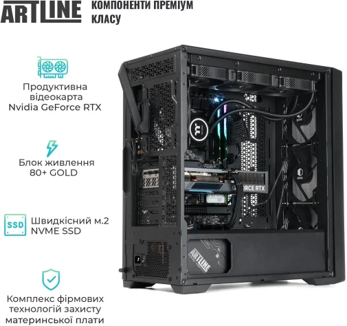 Робоча станція ARTLINE WorkStation W95 (W95v60) є висококласним рішенням для професіоналів, які потребують максимальної продуктивності та надійності. Оснащена потужним 16-ядерним процесором AMD Ryzen 9 9950X з частотою від 4.3 до 5.7 GHz, вона легко справляється з ресурсоємними завданнями. Оперативна пам'ять об'ємом 96 GB DDR5-6400 та два накопичувачі SSD об'ємом 2 TB кожен забезпечують виняткову швидкість обробки даних та великий обсяг для зберігання. Відеокарта GeForce RTX 5070 з 12 GB пам'яті дає можливість роботи з графічно складними програмами та іграми на високих налаштуваннях. Для надійного охолодження процесора використовується Premium 360mm WaterCooler WS, а корпус оснащений покращеною системою вентиляції з кількома вентиляторами, включаючи пиловий фільтр. Підключення до мережі забезпечується через 2.5Gb мережеву карту та Wi-Fi 802.11be, а також Bluetooth 5.4 для бездротових пристроїв. Усі ці компоненти розміщені в корпусі QUBE ARGON WS, який не тільки ефективно охолоджує систему, але й має стильний дизайн. Ця робоча станція ідеально підходить для інтенсивної роботи, рендерингу та багатозадачності, забезпечуючи високу продуктивність і довговічність.