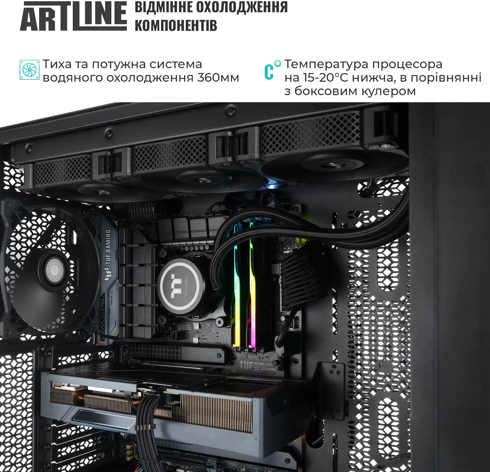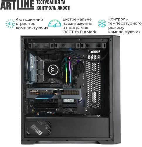 Робоча станція ARTLINE WorkStation W96 Windows 11 Pro (W96v102Win) — це високоефективна та потужна система, призначена для професіоналів, які працюють з вимогливими програмами та задачами. Вона оснащена 24-ядерним процесором Intel Core i9-14900K з тактовою частотою від 3.2 до 6.0 GHz, що забезпечує відмінну продуктивність при багатозадачності та складних обчисленнях. Система охолодження Premium 360mm WaterCooler WS ефективно підтримує температурний режим, дозволяючи процесору працювати на повну потужність. 96 ГБ оперативної пам'яті DDR5-6400 і два накопичувачі SSD об'ємом 2 ТБ кожен забезпечують швидкий доступ до даних і надійне зберігання інформації. Відеокарта Quadro RTX 4000 ADA з 20 ГБ пам'яті ідеально підходить для роботи з графікою, 3D-моделями та відеоконтентом. Блок живлення потужністю 850 Вт з сертифікацією 80+ Gold гарантує стабільну роботу системи, а корпус QUBE ARGON WS з ефективною системою охолодження підтримує оптимальну температуру навіть при тривалих навантаженнях. Мережевий модуль 2.5Gb і підтримка Wi-Fi 802.11ac|ax та Bluetooth 5.3 забезпечують швидкі та стабільні з'єднання. У системі також передбачені пилові фільтри та вентилятори збільшеного діаметра для покращеної циркуляції повітря, що сприяє довговічності всіх компонентів. Робоча станція працює на Windows 11 Pro, надаючи сучасні функції та безпеку.