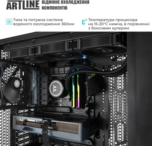 Робоча станція ARTLINE WorkStation W96 Windows 11 Pro (W96v105Win) є високопродуктивним рішенням, призначеним для професіоналів, яким необхідна надійна та потужна техніка для роботи з ресурсоємними додатками. Оснащена 8-ядерним процесором AMD Ryzen 7 9700X з тактовою частотою до 5.5GHz, вона забезпечує відмінну продуктивність для різних завдань, від монтажу відео до складного моделювання. Відеокарта Quadro RTX 4000 ADA 20GB гарантує стабільну роботу з графікою та 3D-рендерингом. Робоча станція оснащена 96GB оперативної пам'яті DDR5, що дозволяє без проблем працювати з великими обсягами даних. Для зберігання інформації передбачені два накопичувачі: SSD M.2 NVMe об'ємом 2TB і SSD 2.5" SATA на 2TB, що дає в сумі 4TB для різних потреб. Охолодження системи здійснюється за допомогою 360mm водяного охолодження та кількох вентиляторів збільшеного діаметра для оптимальної циркуляції повітря. Корпус QUBE ARGON WS з пиловими фільтрами та додатковими вентиляторами забезпечує не тільки високу продуктивність, але й довговічність пристрою. Робоча станція постачається з операційною системою Windows 11 Pro, яка забезпечує стабільну та безпечну роботу.