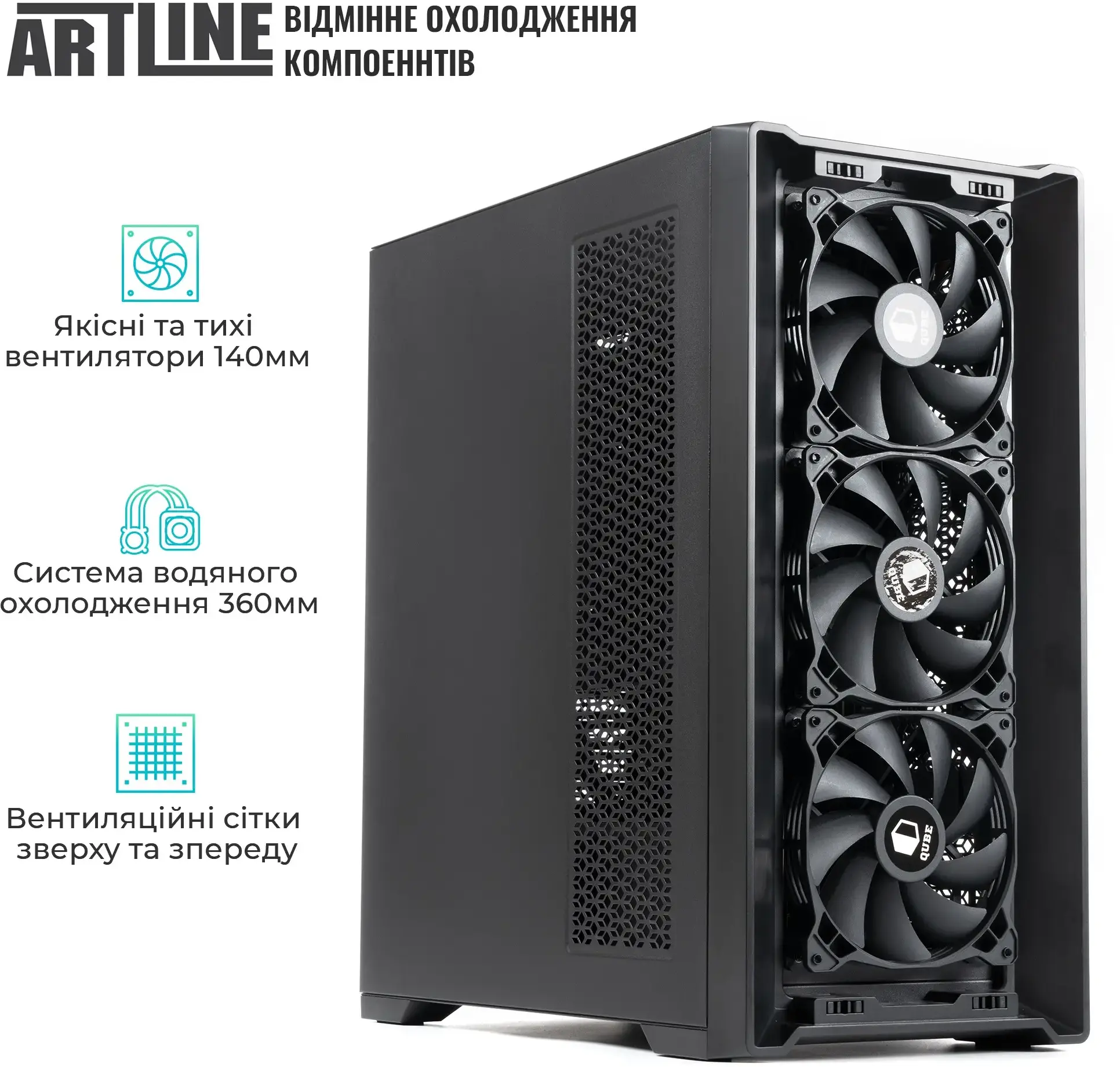 SSD NVMe Gen4 обсягом 2 ТБ забезпечує високу швидкість доступу до даних. Корпус QUBE ARGON WS (475x230x470 мм, 14 кг) обладнаний 7 вентиляторами та пиловим фільтром, блок живлення — 850 Вт (80+ Gold). Доступний широкий набір портів, зокрема Thunderbolt 4, також підтримуються Wi-Fi 7 і Bluetooth 5.4.