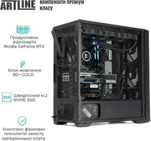 Робоча станція ARTLINE WorkStation W97 Windows 11 Pro (W97v46Win) - потужний інструмент для професіоналів, яким важливі стабільність та продуктивність. Серце системи – 24-ядерний процесор Intel® Core™ i9-14900K (8p+16e, до 6.0 ГГц) із системою водяного охолодження Premium 360mm. Встановлено 64 ГБ оперативної пам'яті DDR5-6400 RGB та два SSD: 2 ТБ NVMe Gen4 та 2 ТБ SATA. Графіку забезпечує відеокарта NVIDIA GeForce RTX 5080 на 16 ГБ. Станція оснащена Windows 11 Pro, підтримує Wi-Fi 802.11ax, Bluetooth 5.3 та має широкий набір сучасних інтерфейсів. Корпус QUBE ARGON WS з потужною вентиляцією та блоком живлення 1600W 80+ Gold. Габарити: 475x230x470 мм, вага: 14 кг. У комплекті - ПК, техпаспорт, кабель живлення. Гарантія – 38 місяців.