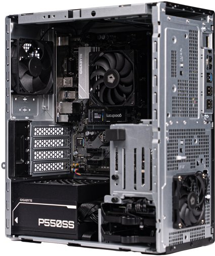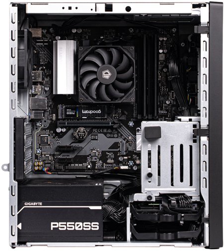 У цьому комп'ютері попередньо встановлено операційну систему Linux, а також є вбудований блок живлення потужністю 550 Вт, який забезпечить стабільну роботу всієї збірки.