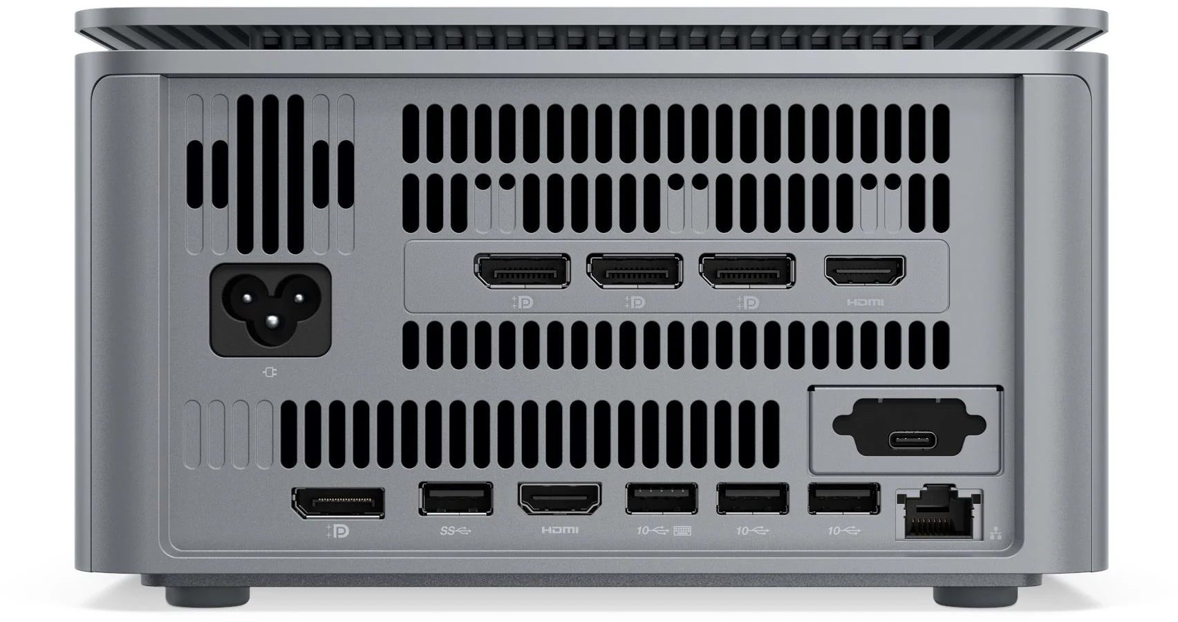 Підключення дуже гнучке та сучасне: кілька USB-портів (включаючи Type-C з Power Delivery), HDMI, DisplayPort, Gigabit Ethernet, Wi-Fi 6E та Bluetooth — можна під'єднати кілька моніторів, периферію, мережу та зовнішні пристрої без жодних проблем. Є можливість розширення пам’яті та накопичувачів, що робить систему готовою до майбутнього.