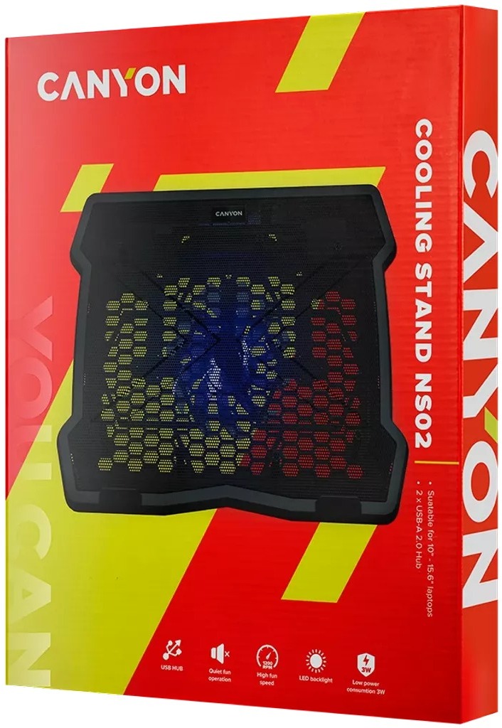 Підставка для охолодження ноутбуків Canyon NS-02 призначена для пристроїв із діагоналлю екрана до 15.6 дюймів, включаючи MacBook. Вона оснащена одним вентилятором розміром 125 х 125 х 15 мм, який працює зі швидкістю від 800 до 1000 об/хв. Це забезпечує ефективне відведення тепла, що сприяє стабільній роботі ноутбука навіть у спеку чи під час виконання ресурсоємних завдань.