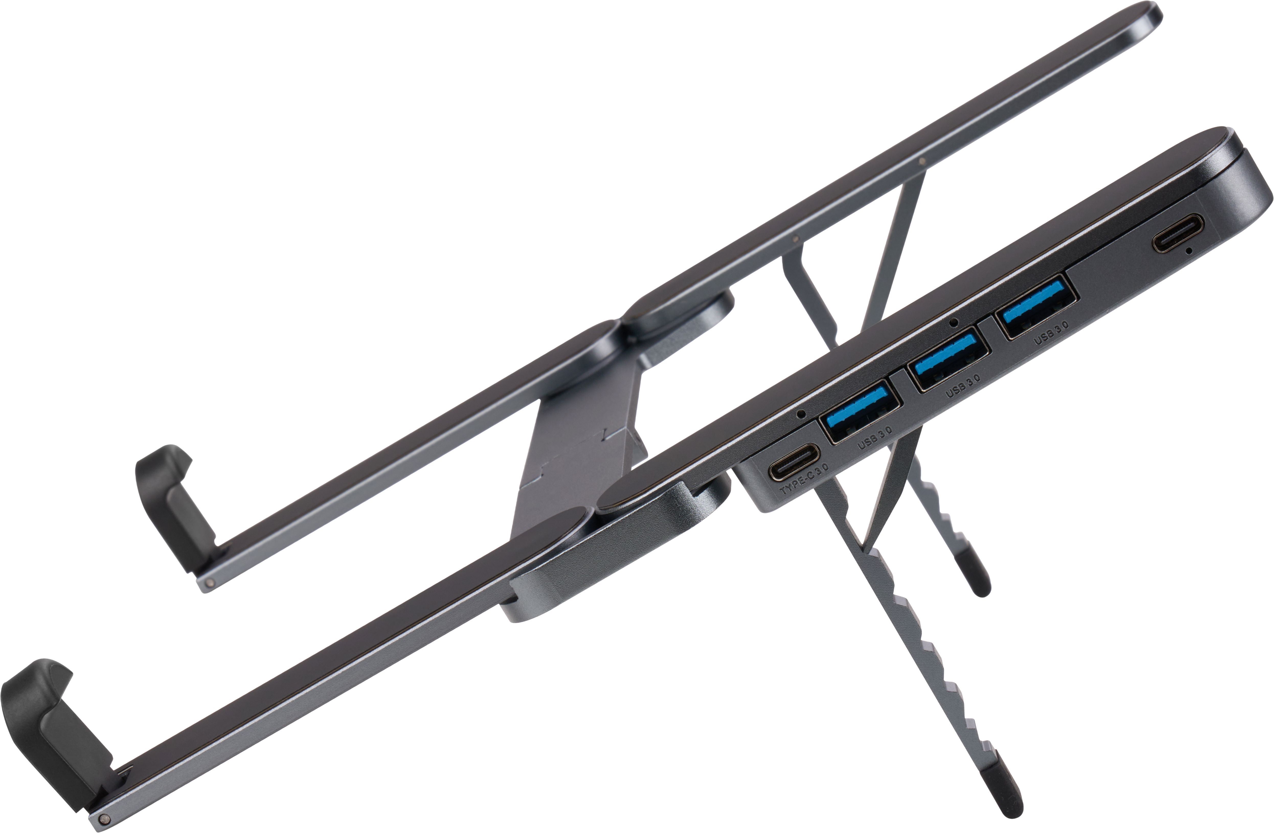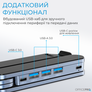 Ключовою перевагою моделі LS100HUB є вбудований USB-хаб, який суттєво розширює функціональність пристрою. Завдяки цьому ви можете зручно підключати периферійні пристрої та передавати дані без необхідності використовувати додаткові адаптери. Підставка оснащена USB-C роз'ємом для живлення та кількома портами USB-A 3.0 і USB-C 3.0, що забезпечує високу швидкість передачі даних та зручність підключення миші, клавіатури, флеш-накопичувача чи інших аксесуарів.