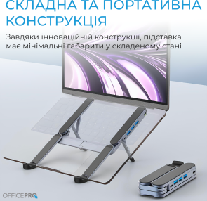 Універсальна підставка для ноутбука LS100HUB – це інноваційне рішення, яке поєднує в собі портативність, надійність та розширену функціональність. Ця модель створена для тих, хто цінує комфорт під час роботи та потребує зручного доступу до всіх необхідних інтерфейсів.