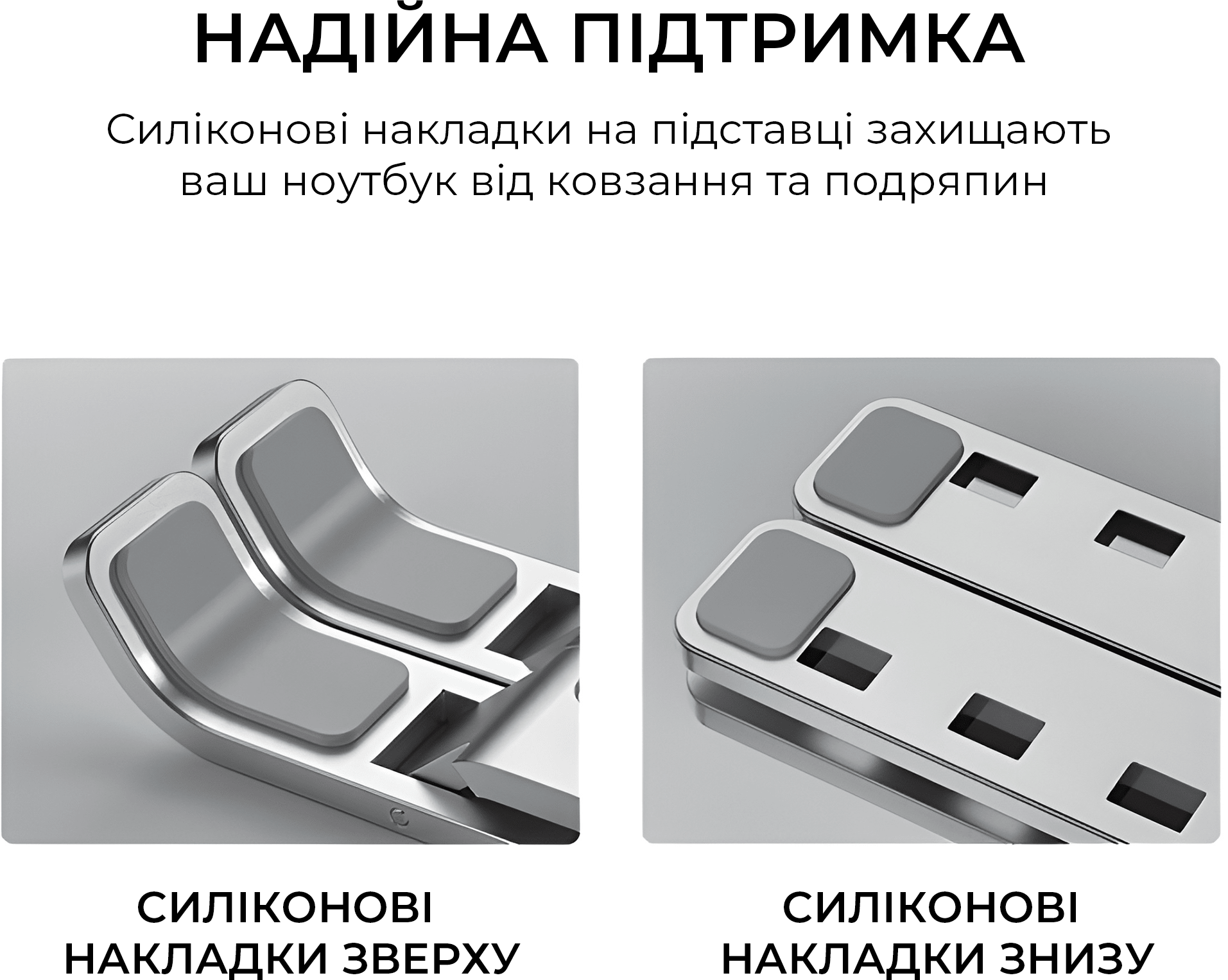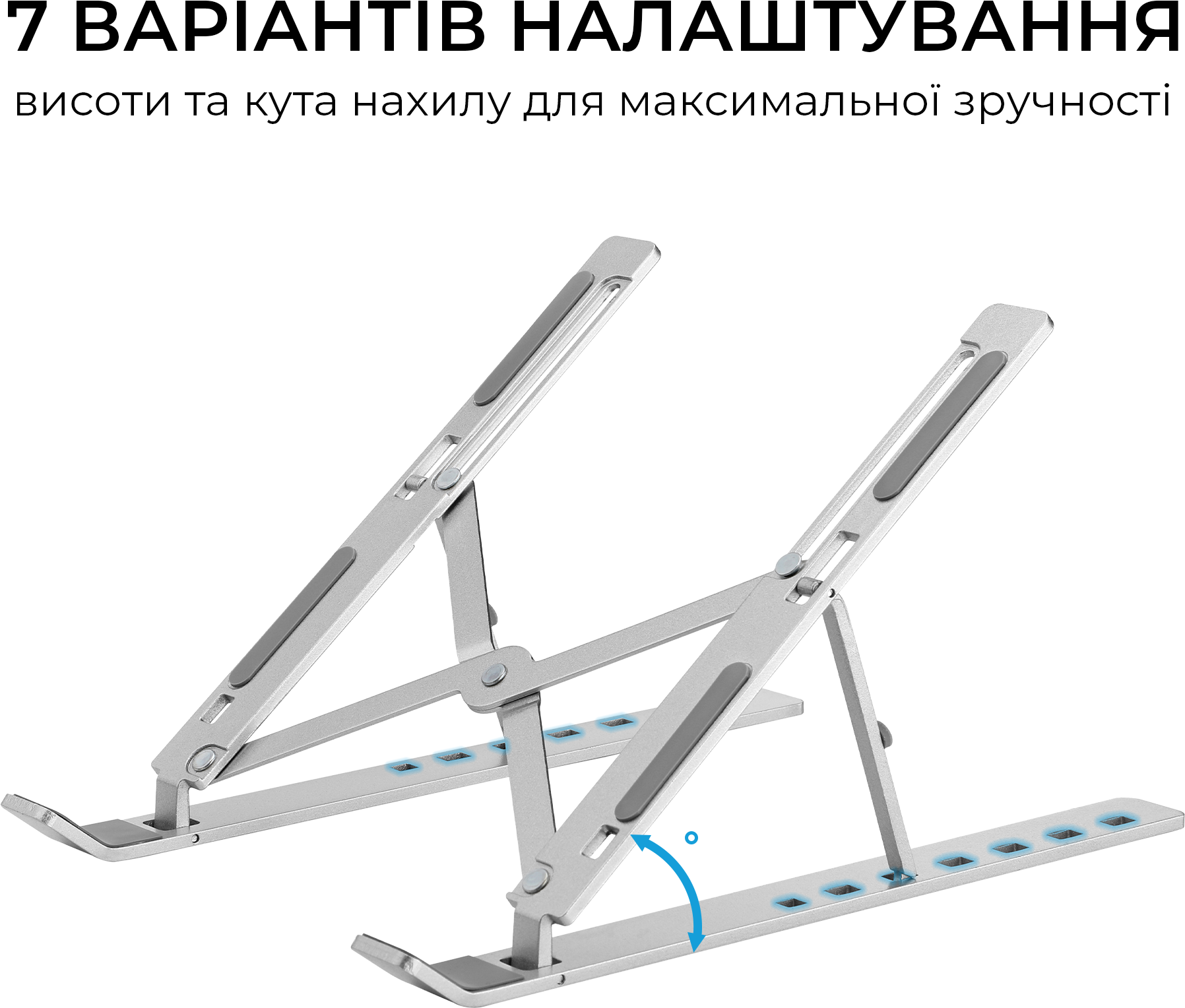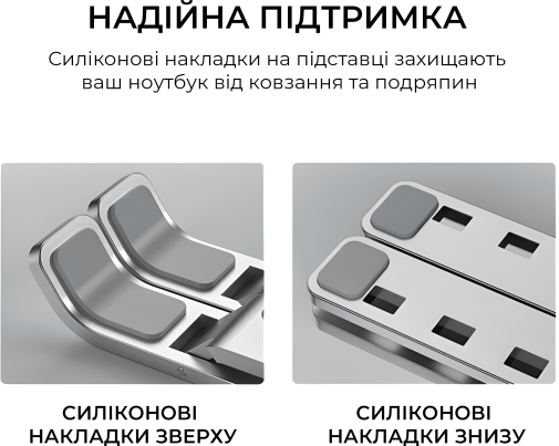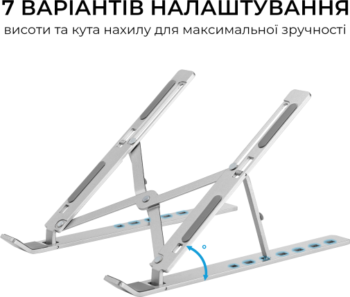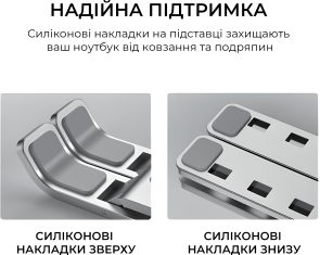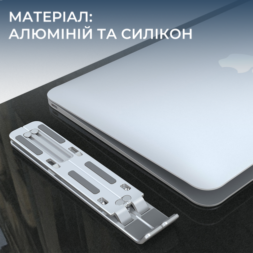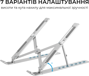 Головна перевага LS322S — сім рівнів регулювання висоти, що дозволяє легко знайти оптимальне положення екрану для вашої постави та максимально знизити навантаження на шию та очі під час тривалої роботи чи навчання. Відкрита конструкція покращує циркуляцію повітря під ноутбуком, сприяючи кращому відведенню тепла та запобігає перегріванню пристрою. М’які силіконові накладки надійно фіксують ноутбук на місці та захищають корпус від подряпин. Підставка легко складається для компактного зберігання або зручного транспортування. Елегантне сріблясте анодоване покриття підкреслить стиль будь-якого робочого простору — від домашнього кабінету до офісного столу.