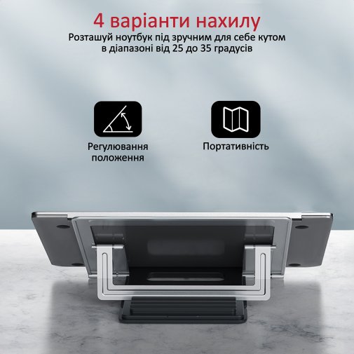 Покращує теплове розсіювання та забір повітря за рахунок спеціальної каркасної конструкції та положення ноутбука над поверхнею.