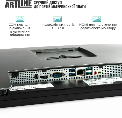 Моноблок ARTLINE Business GT43 (GT43v05) - сучасне рішення для офісу та будинку, що поєднує потужність та зручність. Оснащений 6+4-ядерним процесором Intel Core i5-14400 (2.5-4.7GHz) з охолодженням BOX, 16 ГБ оперативної пам'яті DDR4-2666 і швидким SSD-накопичувачем 480GB M.2 NVMe для миттєвої роботи додатків. 23.8-дюймовий IPS Full HD сенсорний екран з підтримкою мультитач забезпечує відмінну якість зображення та комфортне керування. Вбудовані стереодинаміки, 2.0 Мп веб-камера, Wi-Fi 802.11ac, COM-порт для підключення периферії та багатий набір інтерфейсів (USB 2.0, USB 3.2 Gen1/Gen2, HDMI, LAN, аудіороз'єми). Компактний корпус Artline GT40 підтримує кріплення VESA, а гарантія 38 місяців підтверджує надійність пристрою. Відмінний вибір для роботи, навчання та щоденних завдань.
