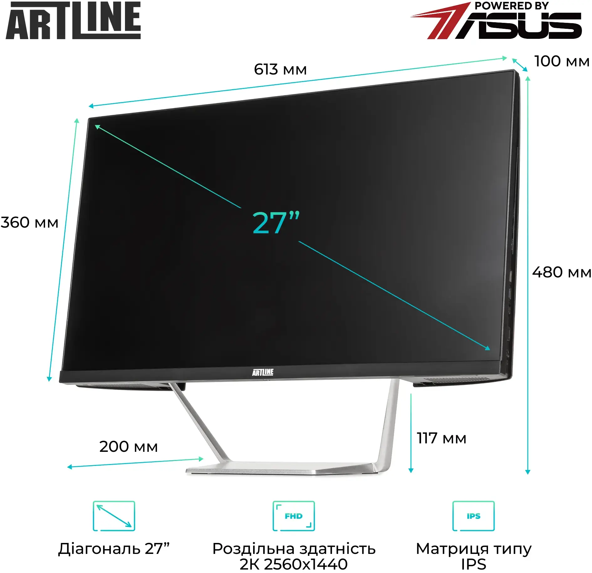 Особливою перевагою є 27-дюймовий IPS-екран з роздільною здатністю Quad HD (2560×1440). Він відтворює яскраву, насичену картинку з точною передачею кольорів і широкими кутами огляду, що робить його зручним для роботи з графікою, перегляду відео та веб-серфінгу.