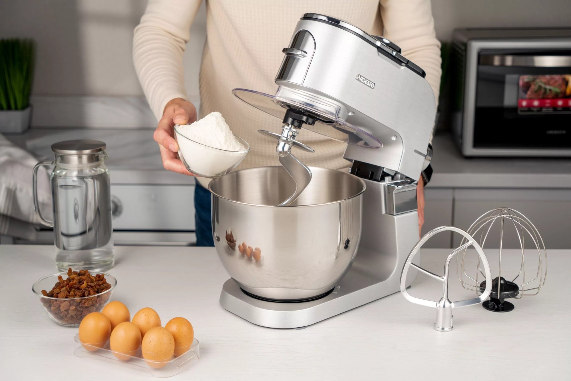 Планетарний міксер Ardesto KMCH-K1500SS створений для тих, хто прагне реалізувати найсміливіші кулінарні задуми та мати під рукою універсальний інструмент для будь-яких завдань. Його серцем є потужний двигун на 1500 Вт, який у поєднанні з 6 швидкісними режимами та додатковим режимом Pulse забезпечує точний контроль під час роботи з будь-якими інгредієнтами — від легких кремів до густих видів тіста. Усе це розміщене в стильному, мінімалістському та водночас міцному корпусі з алюмінію, а металевий редуктор і надійні деталі приводу підкреслюють довговічність конструкції.