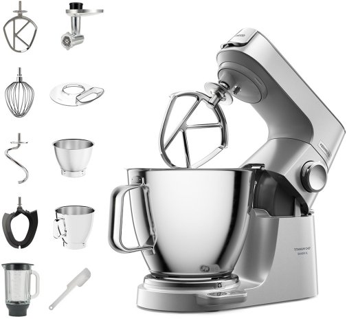 У стандартну комплектацію входять металеві чаші місткістю 5 та 7 л. Розмір і форма чаш підібрані таким чином, щоб насадки кухонної машини відповідали їм по ширині. До комплекту входить прозора захисна кришка, що запобігає розбризкуванню вмісту. Основні насадки: гак для тіста, вінчик та гнучкий збивач. Також є насадки та для приводів: м'ясорубка та блендер. Маючи Kenwood KVL 85.224 SI з її комплектацією, повністю зникає необхідність використання інших кухонних приладів.