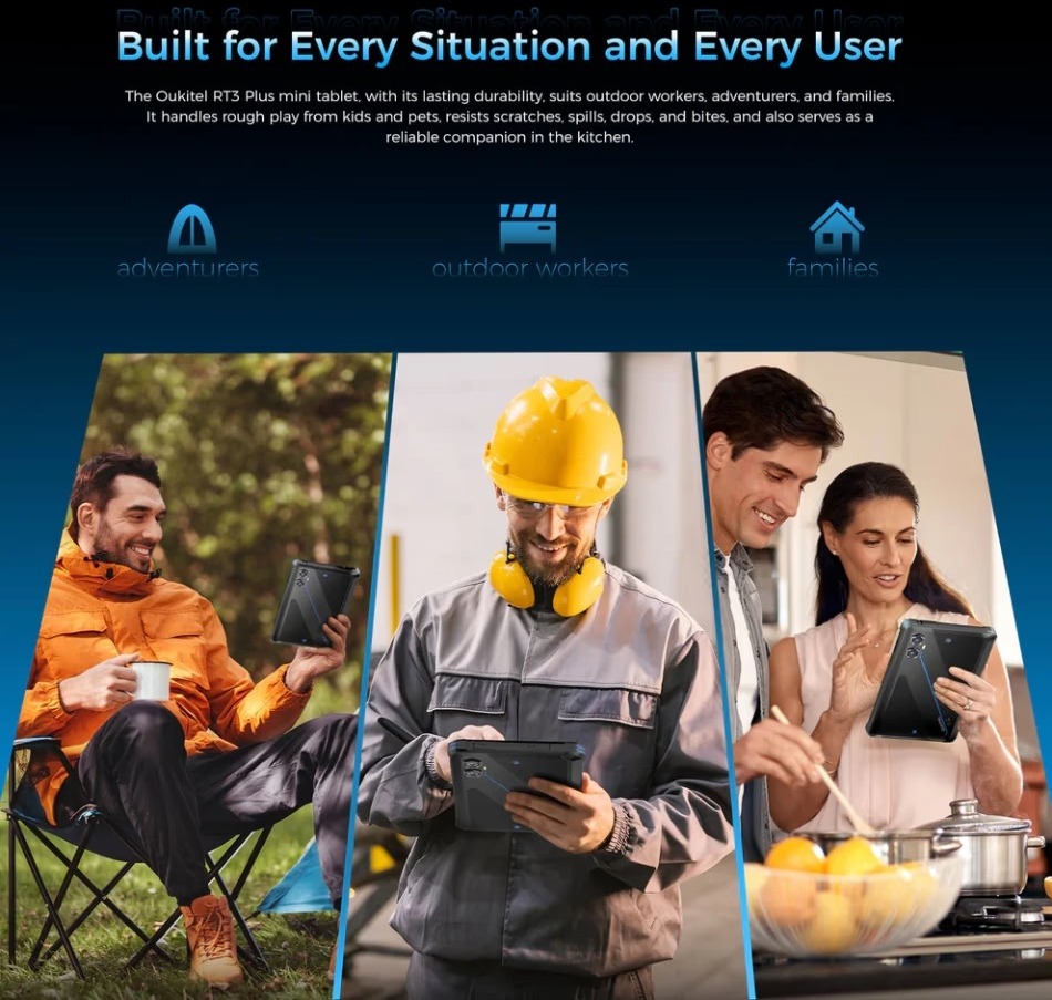 Oukitel RT3 Plus — це сучасний захищений планшет, створений спеціально для тих, хто працює або відпочиває в екстремальних умовах. Завдяки сертифікаціям IP68/IP69K та відповідності військовому стандарту MIL-STD-810H, пристрій не боїться води, пилу, падінь з висоти та сильних ударів. Це ідеальний вибір для будівельників, рятувальників, туристів та всіх, кому потрібна надійна техніка, що витримає найскладніші випробування.