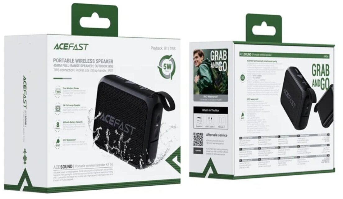 Незважаючи на свої скромні розміри, ACEFAST K4 Go видає вражаюче якісний звук: один повнодіапазонний динамік разом із пасивною басовою мембраною забезпечують чисті високі частоти, виразні середні та приємний, відчутний бас. Потужність 5 Вт виявляється достатньою, щоб заповнити музикою невелику компанію чи створити власний саундтрек до дня. А акумулятор на 8 годин безперервного відтворення та зарядка через USB-C дозволяють насолоджуватися улюбленими треками без зайвих турбот про підзарядку.