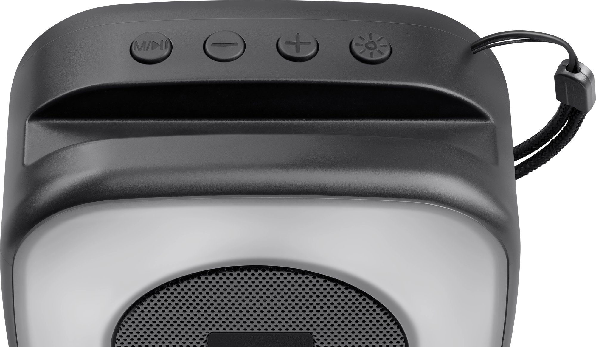 Звукові можливості моделі забезпечує один широкосмуговий 2-дюймовий динамік потужністю 5 Вт (RMS), що видає чистий звук у діапазоні частот від 150 до 18000 Гц. Колонка оснащена яскравим світлодіодним підсвічуванням із 14 різними режимами, яке можна в будь-який момент вимкнути. Окремо варто відзначити вбудовану підставку для смартфона та функцію PowerBank — колонка здатна заряджати інші гаджети через порт Type-C.