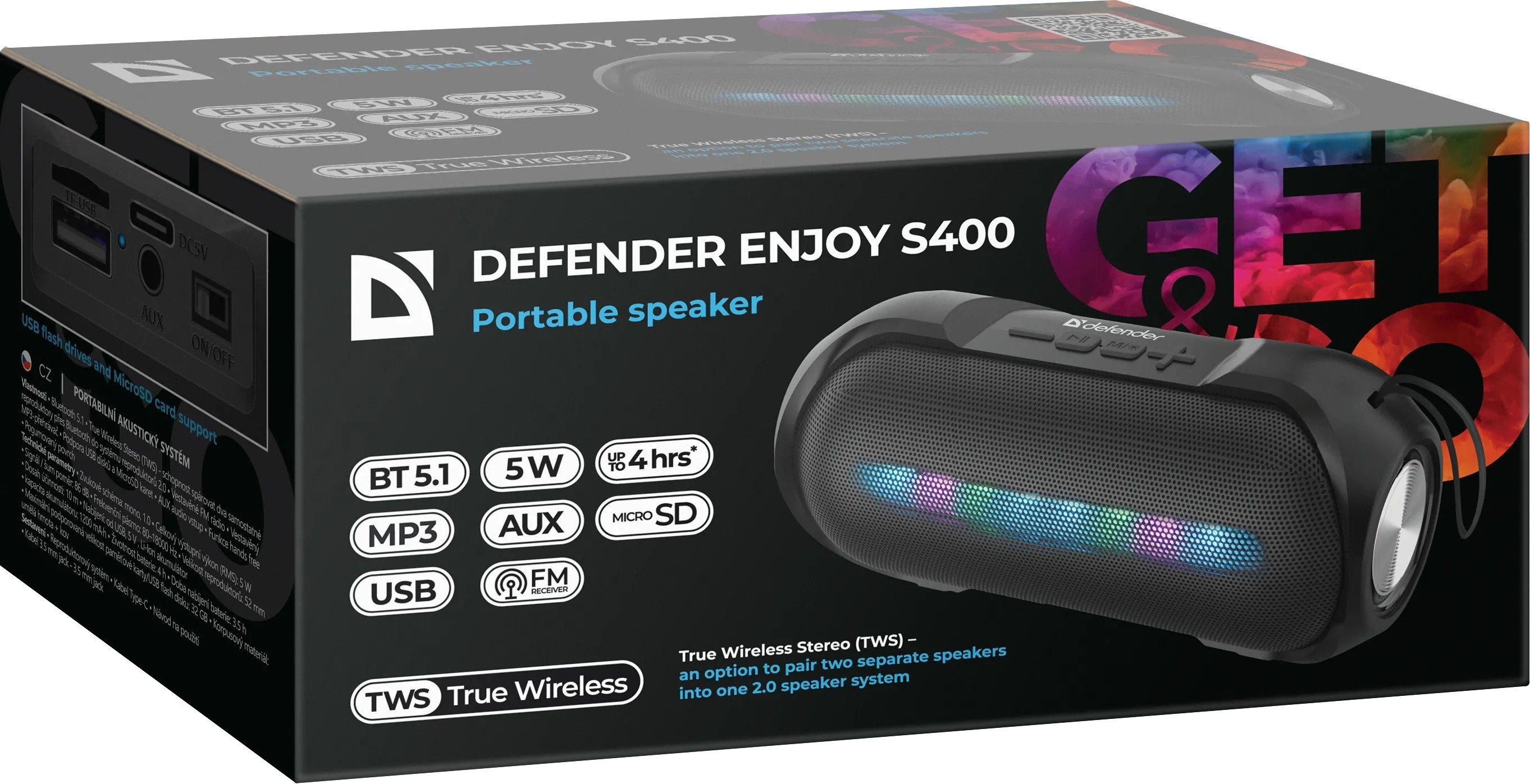 Портативна колонка Defender із серії для подорожей вирізняється компактністю (7.6 x 8.0 x 16.2 см) і вагою 0.32 кг, що робить її ідеальною для активного відпочинку. Оснащена Bluetooth 5.1, вона забезпечує стабільне з’єднання на відстані до 10 метрів. Ступінь захисту IP55 забезпечує стійкість до пилу та бризок.