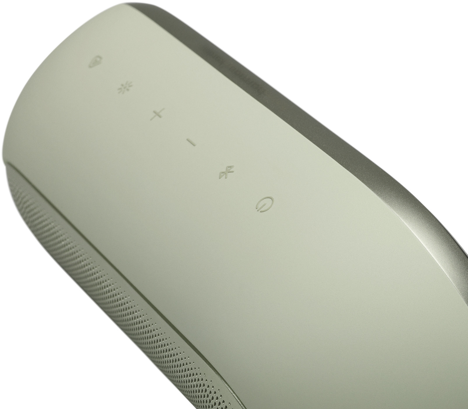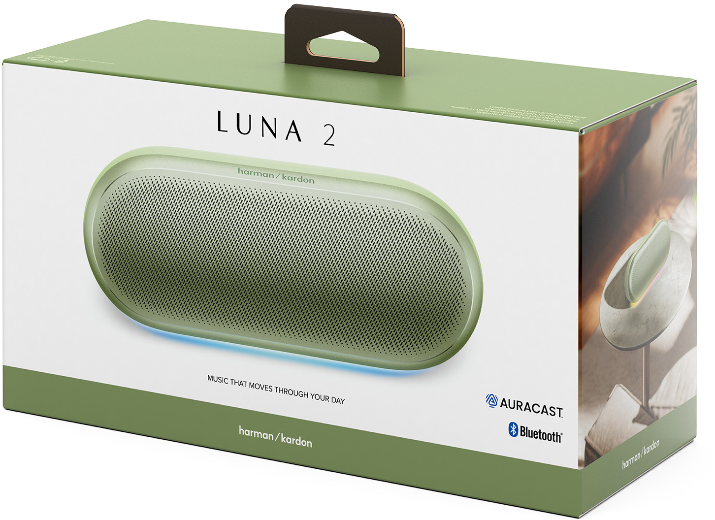 Завдяки контурованій задній стінці і компактному корпусу Luna 2 зручно лежить у руці — її легко взяти з ранковою кавою на терасу або перенести на кухню під час приготування вечері. Знизу розташоване амбієнтне підсвічування, яке створює м'яке сяйво навколо основи колонки; у застосунку Harman Kardon One можна вибрати один із шести світлових режимів, налаштувати кольори та патерни анімації. Через той самий застосунок доступне налаштування еквалайзера, керування всіма підключеними колонками й оновлення прошивки.