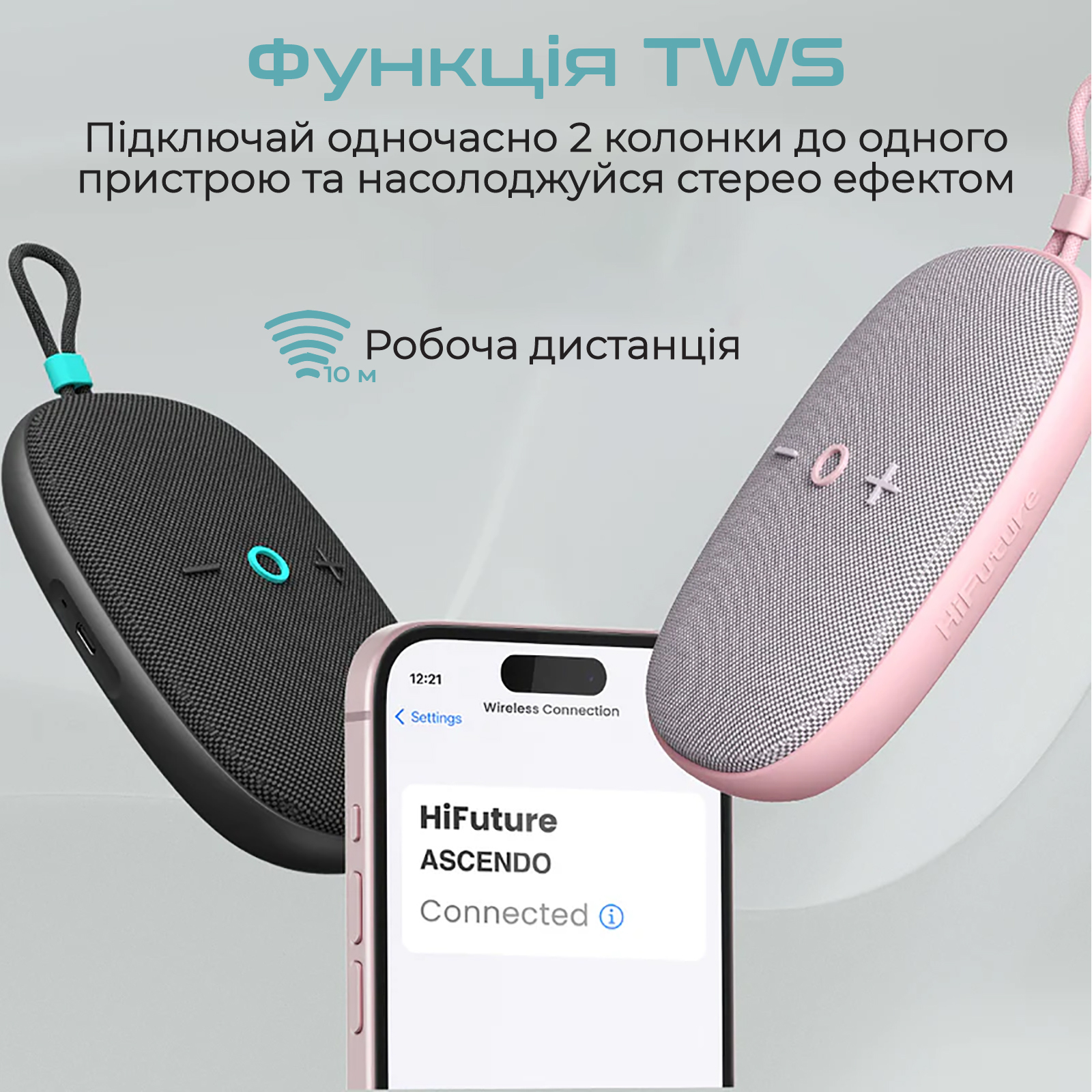 HiFuture Ascendo — ультратонка Bluetooth колонка потужністю 20W. Завдяки своїй легкості та вологозахисту вона відмінно підійде тим, хто займається спортом або веде активний спосіб життя.