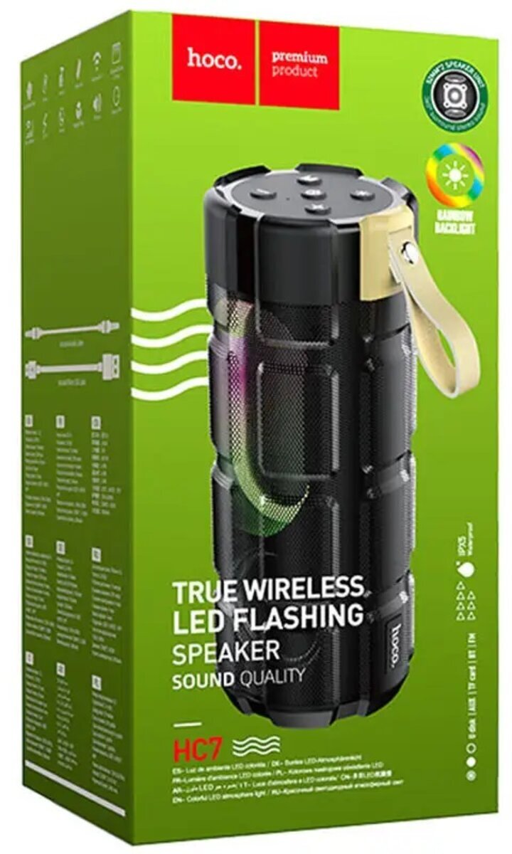 Hoco HC7 Pleasant Sports — це не просто динамік. Його мультифункціональність розширює горизонти розваг, з підтримкою FM-радіо для локальних станцій, слотом для TF-карт та USB-портом для флешок, дозволяючи відтворювати треки офлайн без інтернету, з AUX-входом для дротового з'єднання зі старими плеєрами, а функція TWS (True Wireless Stereo) об'єднує дві колонки в стереопару для об'ємного звучання, ніби ви на приватному концерті, де баси пульсують у ритмі серця, а високі ноти ріжуть повітря.