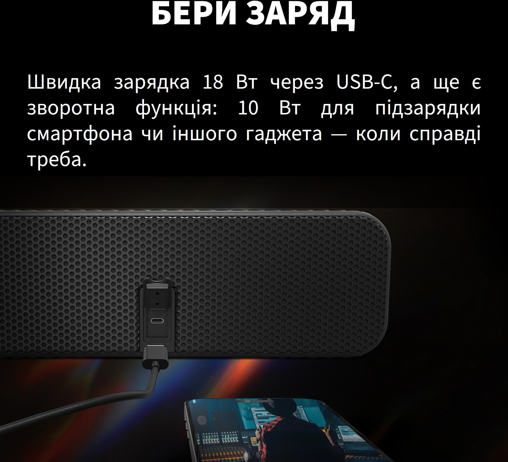 Насолоджуйтесь музикою до 20 годин на одному заряді — ідеально підходить як для використання вдень, так і вночі.