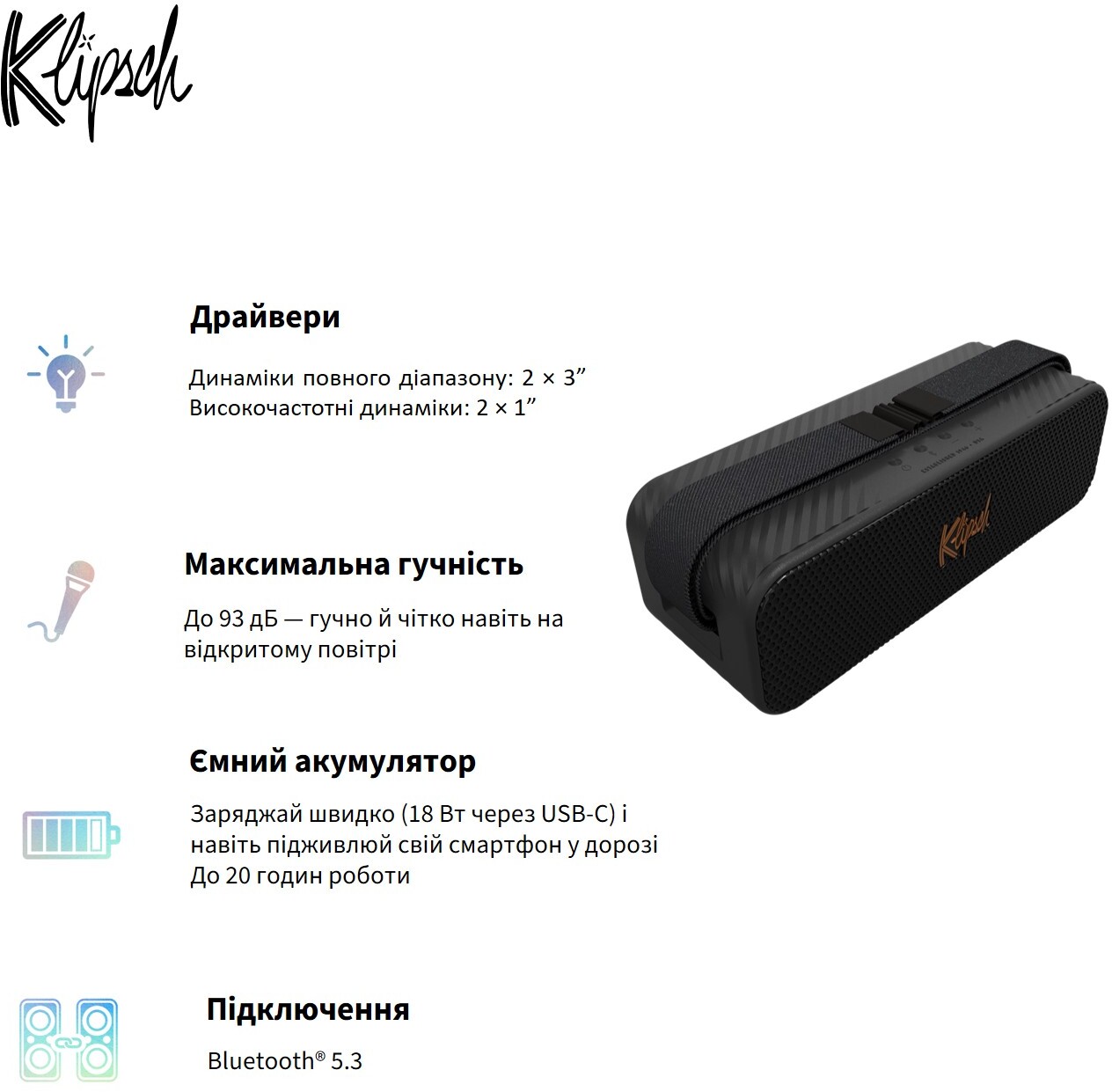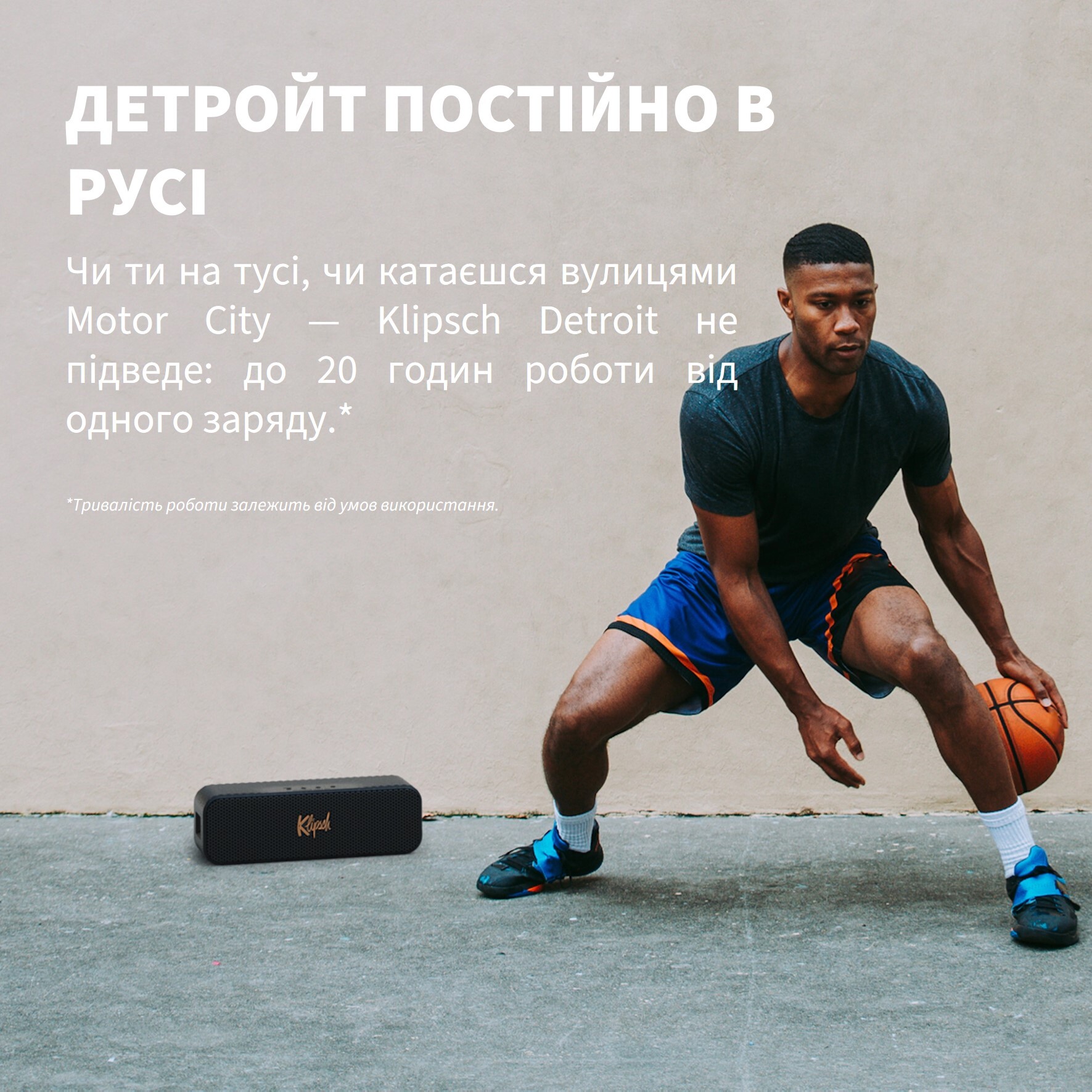 Klipsch Detroit забезпечують потужний звук, глибокі баси та чистий вокал у портативному корпусі. Міцні, водонепроникні та з тривалим часом автономної роботи, вони ідеально підходять для прослуховування музики як у місті, так і на свіжому повітрі.