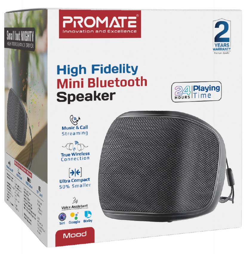 Promate Mood — компактна та стильна колонка для прогулянок та активного відпочинку. 5W гучного і соковитого звуку та 24-годинний запас автономності.