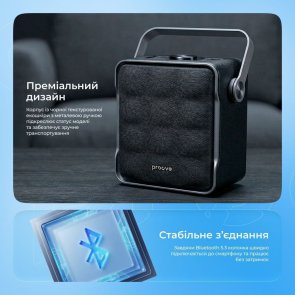 Портативна колонка Proove Fader — це стильна та потужна акустика, яка поєднує якісний звук і зручність використання в компактному форматі. Корпус виготовлений із поєднання ABS-пластику, металу та тканини, доповнений шкіряним покриттям, що надає пристрою сучасного вигляду та приємної текстури. Завдяки продуманій формі та вазі 1,7 кг колонка залишається стійкою під час використання та зручною для перенесення.