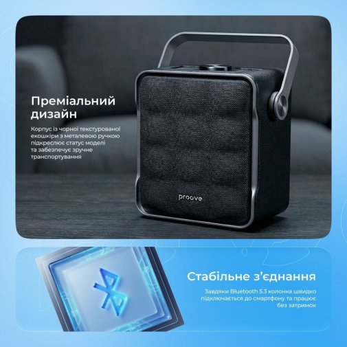 Proove Fader — це збалансований вибір для тих, хто шукає портативну колонку з хорошою потужністю, сучасним дизайном і зручною автономністю для щоденного використання.