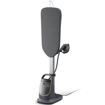 Ця парова система оснащена зручною великою дошкою, яка з легкістю підлаштується під будь-який кут нахилу для комфортного прасування. Також конструкція оснащена гачком для підвішування одягу на плечиках для подальшого відпарювання.