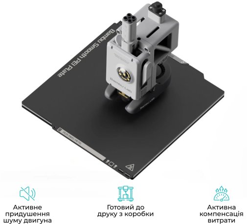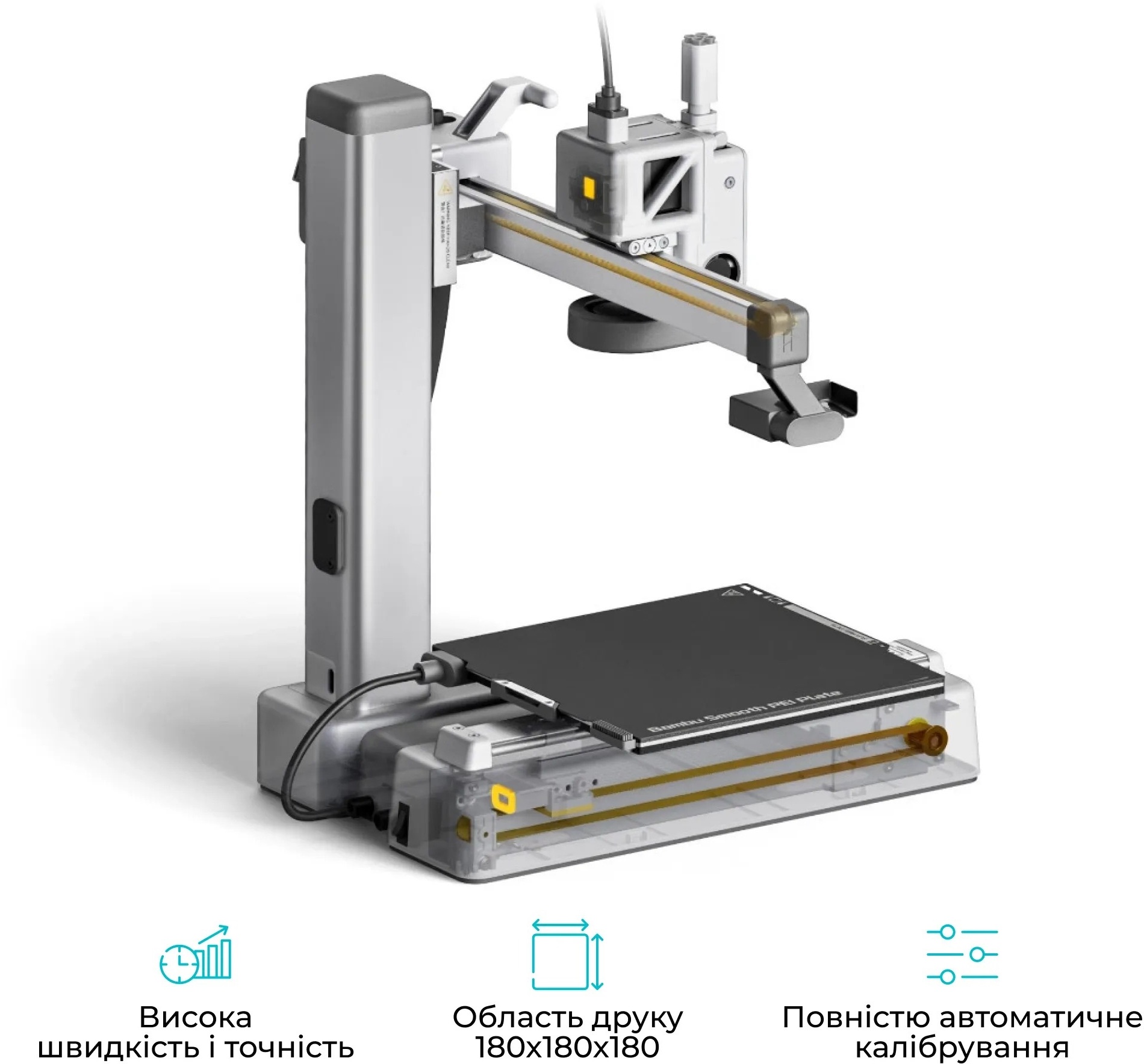 Міцний металевий каркас Bambu Lab A1 Mini забезпечує стабільність та довговічність пристрою. Швидкознімне сопло та інтуїтивний сенсорний інтерфейс роблять його використання простим та зручним. Цей пристрій готовий до роботи відразу після розпакування, що робить його ідеальним вибором для тих, хто не хоче витрачати час на тривале налаштування.
