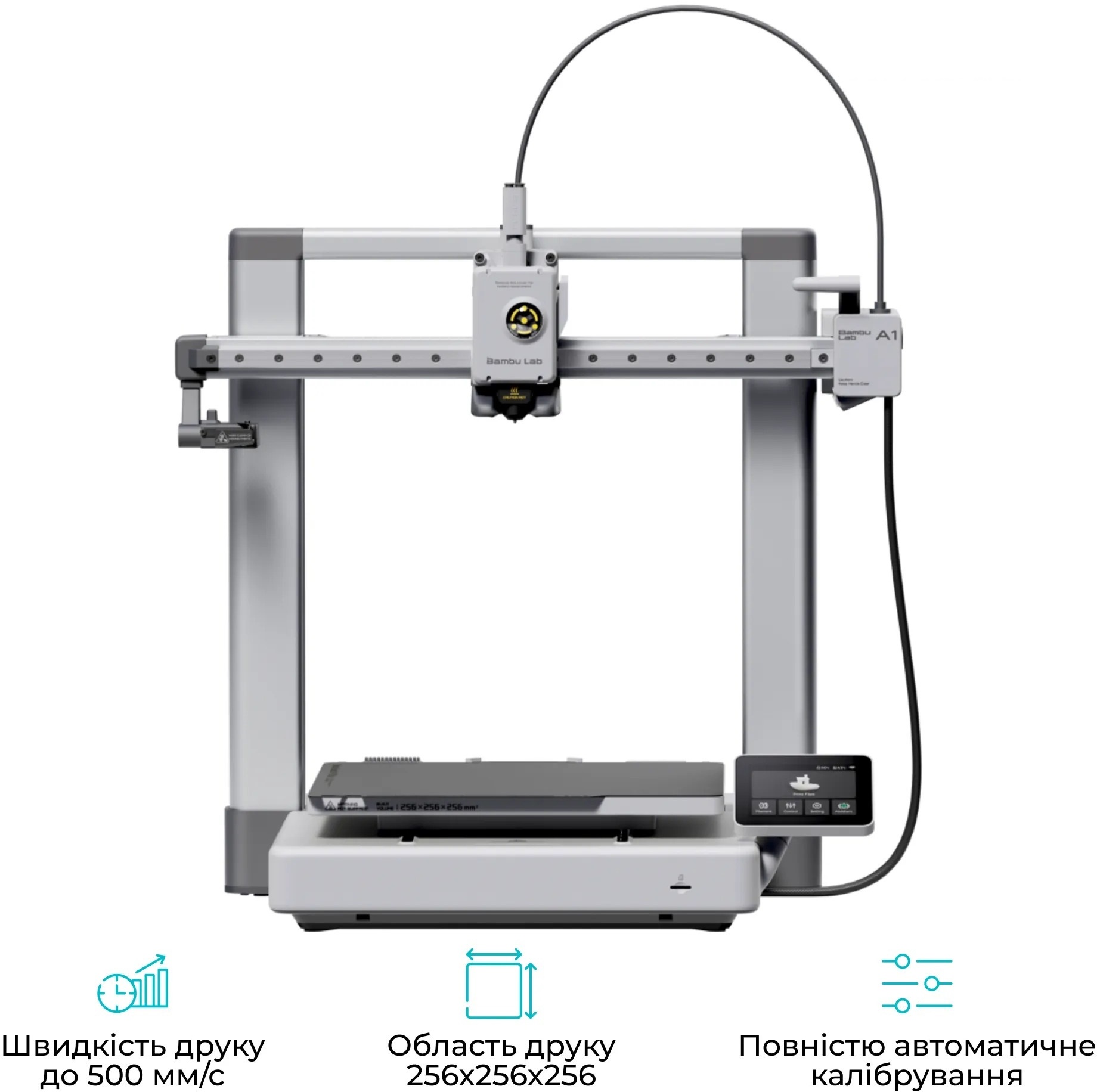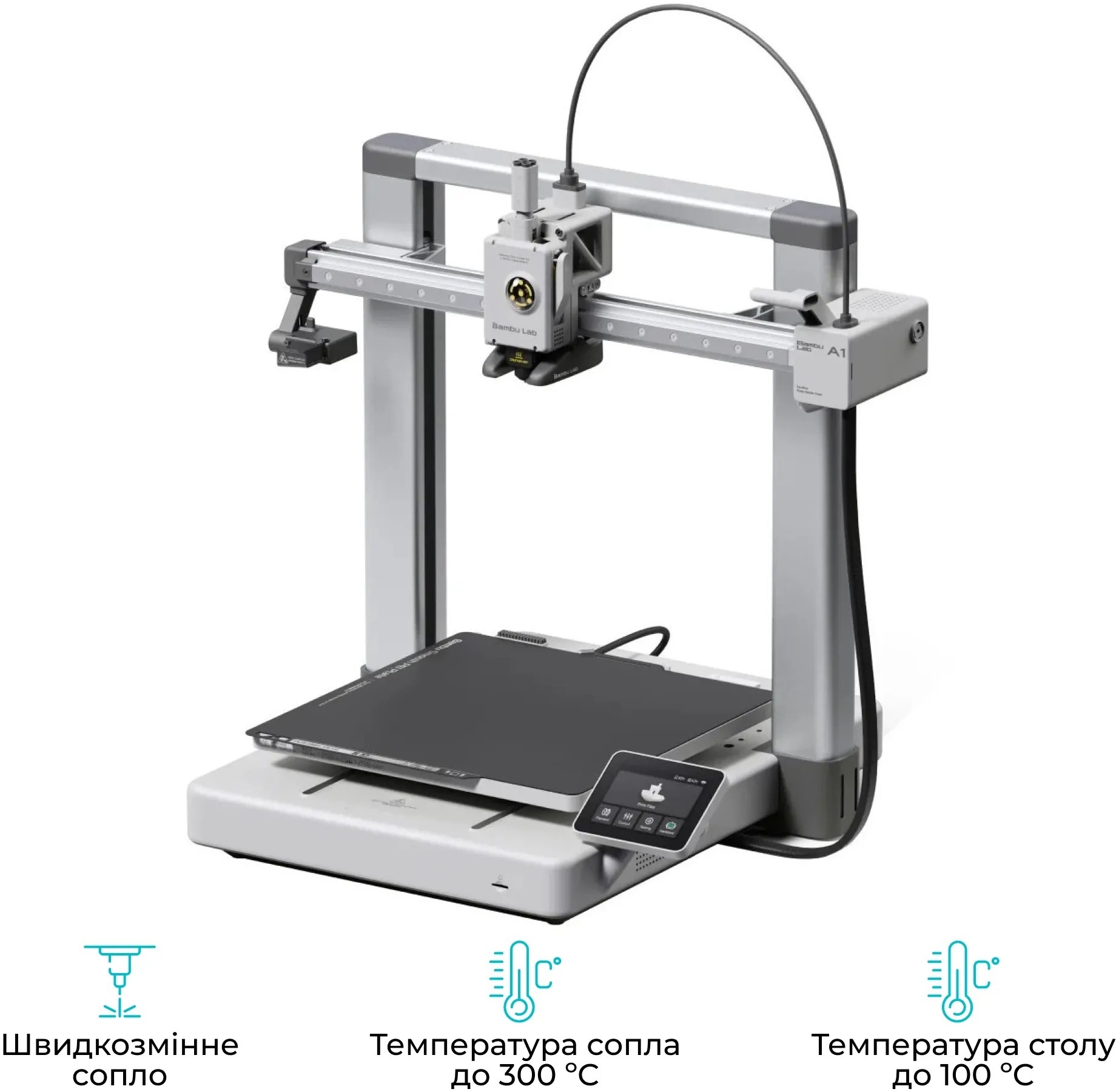 Інтуїтивно зрозумілий сенсорний інтерфейс дозволяє легко керувати всіма функціями пристрою, а знімне сопло спрощує його обслуговування. Міцна металева рама забезпечує стійкість та довговічність конструкції, роблячи Bambu Lab A1 надійним партнером у будь-яких проектах. Підтримка різних матеріалів, таких як PLA, PETG, TPU та PVA, відкриває широкі можливості для експериментів та творчості.
