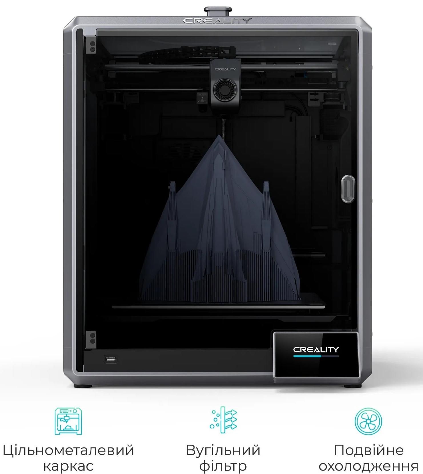 3D-принтер Creality CR-K1 Max 2025 представляє собою сучасний пристрій, розроблений для ентузіастів і професіоналів, які прагнуть до високоточної та швидкої друку. Однією з головних особливостей є закрита камера друку, яка забезпечує стабільність процесу і захищає від зовнішніх впливів, що особливо важливо при роботі з делікатними та складними матеріалами.