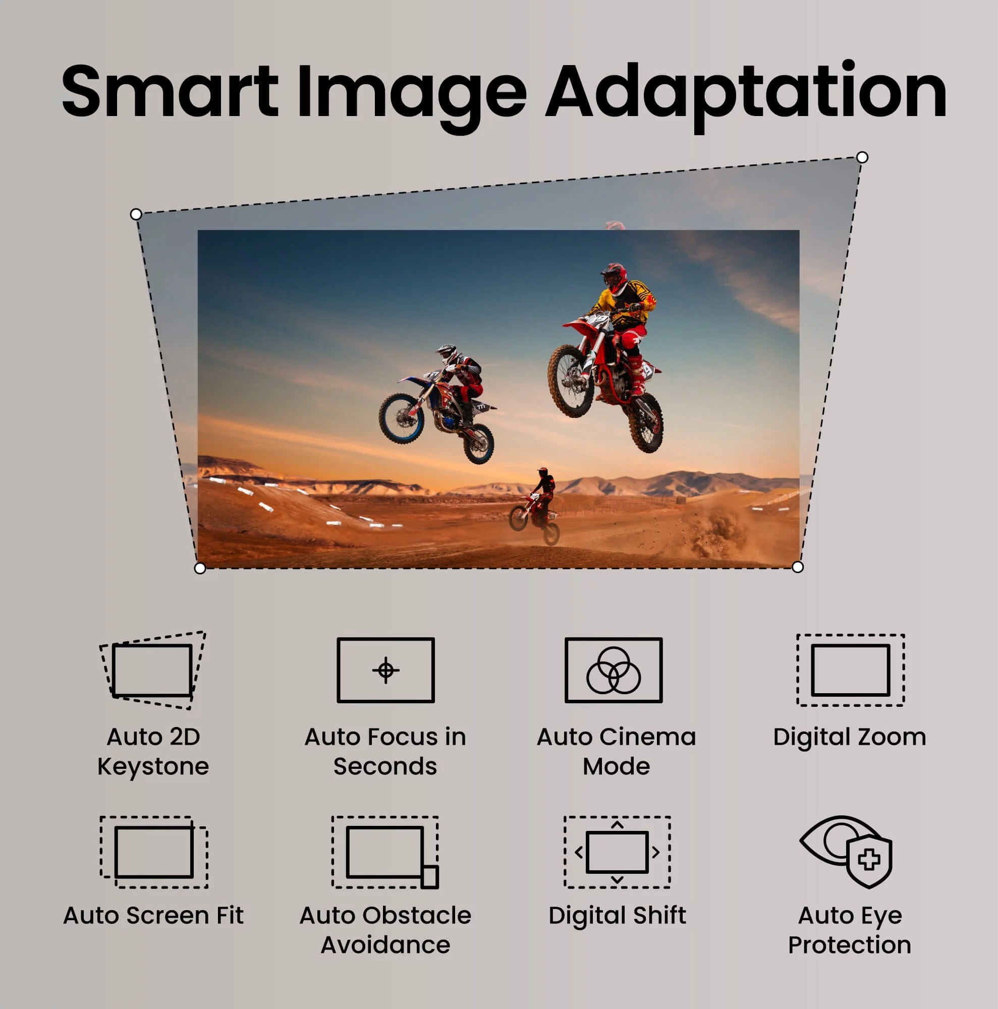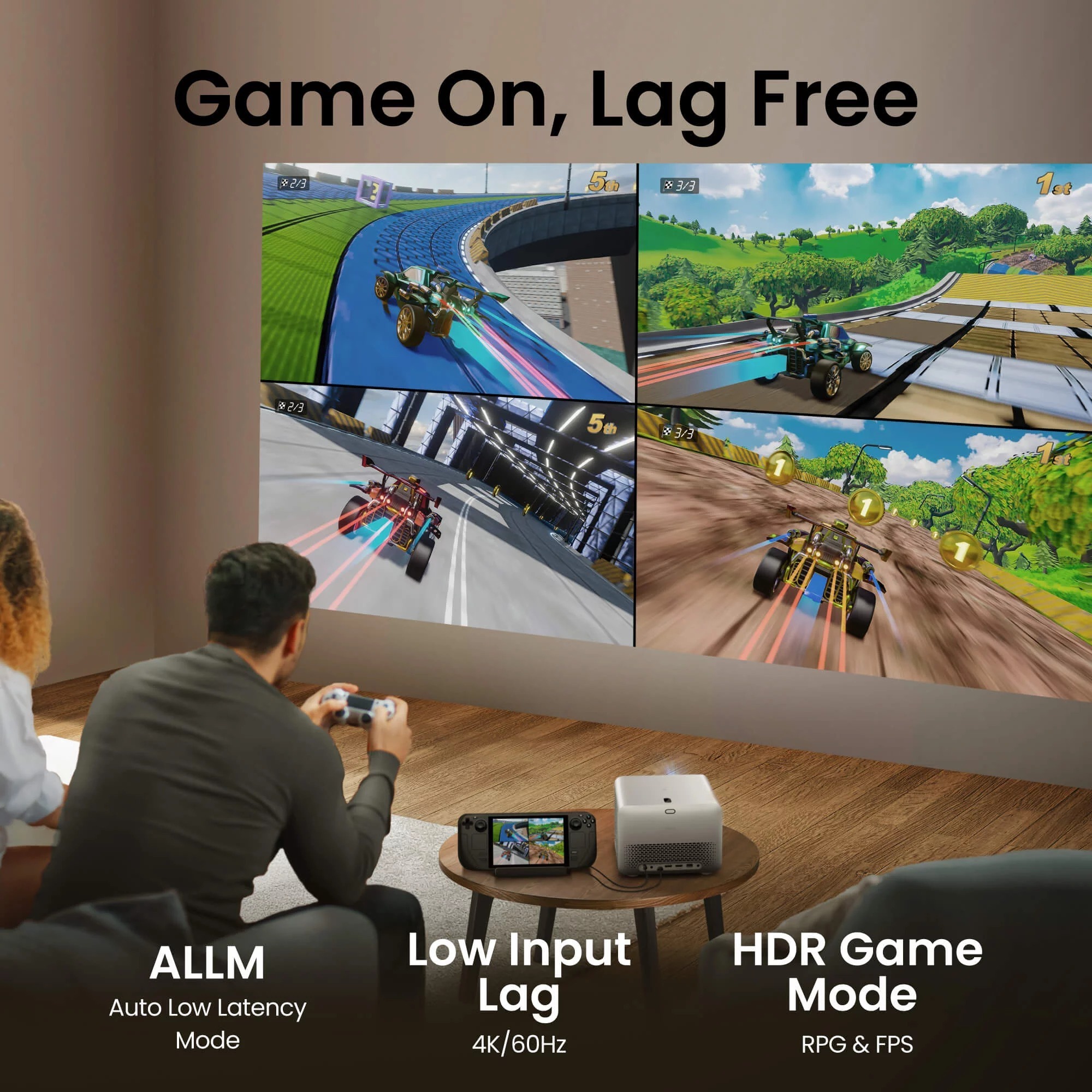 Завдяки технології DLP та яскравості 3000 ANSI люменів, цей проєктор забезпечує роздільну здатність до 4K UHD, дозволяючи створювати зображення діагоналлю до 150 дюймів. Контрастність 600 000:1 у поєднанні з підтримкою HDR10 і технологією CinematicColor з покриттям 98% Rec.709 гарантує насичені кольори та глибокі тіні, що ідеально підходить для перегляду фільмів, презентацій чи спортивних трансляцій навіть у помірно освітлених приміщеннях. Час відгуку 5 мс при 1080p@60 Гц забезпечує плавність у динамічних сценах, а спеціальний Game Mode оптимізує затримку для казуального геймінгу, роблячи проєктор привабливим для ігор на консолях, таких як PlayStation чи Xbox.