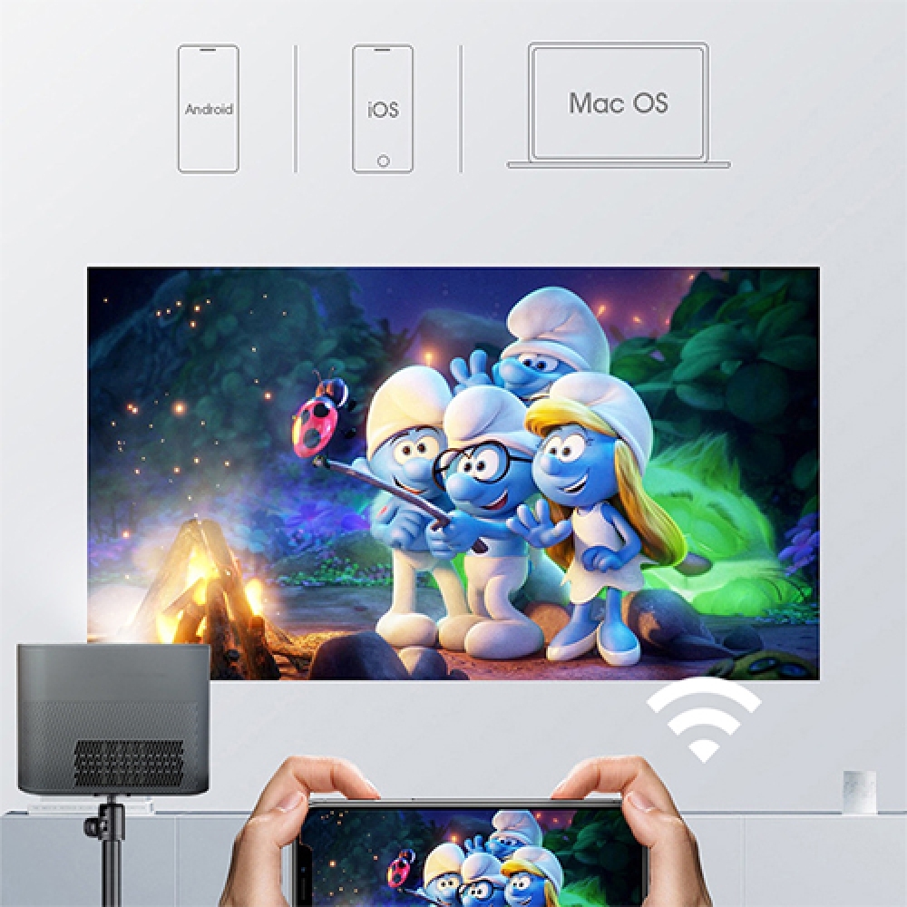 Уявіть: легкий корпус, що легко поміщається в сумку для поїздок чи пікніків, з HDMI-входом для підключення смартфона, ноутбука чи консолі, дозволяючи стрімити Netflix чи YouTube без адаптерів, з автофокусом і корекцією трапеції для швидкого налаштування на нерівних поверхнях, ніби проєктор сам адаптується до вашого простору за хвилини.