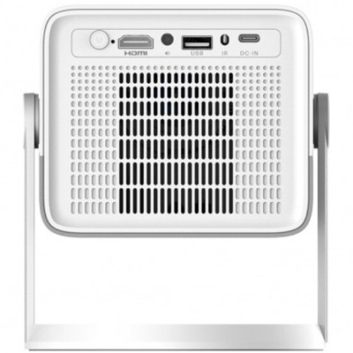 Пристрій використовує енергоефективне LED-джерело світла з ресурсом роботи до 20 000 годин, що гарантує тривалу експлуатацію без заміни лампи. Вбудовані динаміки потужністю 3 Вт забезпечують базовий звук, а для кращої якості можна підключити зовнішню акустику через 3,5 мм аудіовихід. Поворотний дизайн корпусу дозволяє регулювати кут проєкції від 0 до 90 градусів, роблячи встановлення максимально гнучким.