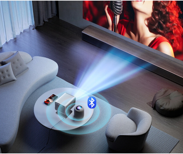 Проєктор має розширені можливості підключення: HDMI-порт, USB Type-A, USB Type-C, а також бездротові модулі Wi-Fi та Bluetooth. Підтримка бездротової проєкції з пристроїв iOS та Android дозволяє легко транслювати контент зі смартфонів чи планшетів.