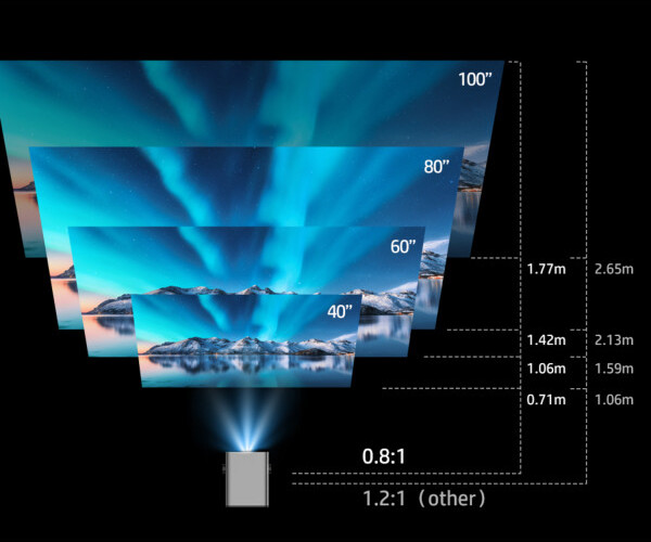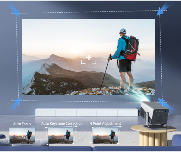Живлення пристрою можливе не тільки від мережі, але й від звичайного PowerBank з підтримкою USB-C PD, що робить його по-справжньому портативним. Компактні розміри, короткофокусна оптика та автономність дозволяють використовувати проєктор вдома, в офісі чи навіть на природі для створення домашнього кінотеатру в будь-яких умовах.