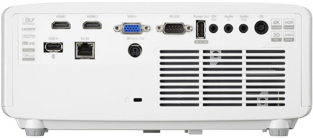 Проєктор також розрахований на режим роботи 24/7, що гарантує стабільність у безперервних інсталяціях, а функція автовимкнення допомагає економити електроенергію, коли пристрій не використовується. Вбудований динамік забезпечує базове аудіосупроводження без необхідності підключення зовнішньої акустики, а порт USB-A з живленням дозволяє під’єднувати додаткові пристрої, наприклад, HDMI-донгли на кшталт Google Chromecast.