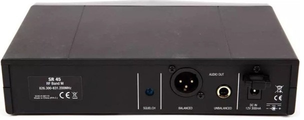 Ресивер SR45 забезпечує стабільний прийом сигналу та оснащений професійними виходами XLR і 1/4", що дозволяє легко інтегрувати систему в різні аудіокомплекси — від портативних підсилювачів до професійних мікшерних пультів. Робота в діапазоні несучих частот 774.100–777.900 МГц із підтримкою 5 каналів гарантує стабільний зв’язок без критичних перешкод, а FM-модуляція забезпечує природне та чисте звучання голосу.