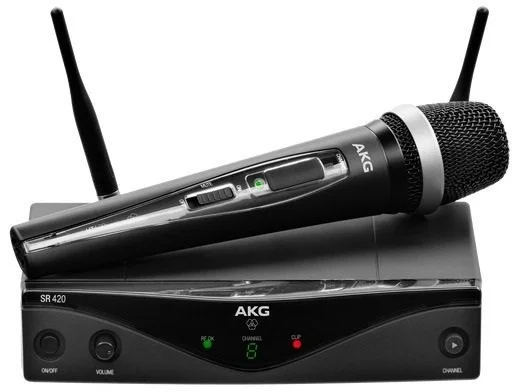 AKG WMS420 Vocal Set Band A — професійна бездротова вокальна система з пилот-тон передачею для запобігання небажаного шуму. Система складається з передавача HT420 з динамічним капсулем D5 для добре збалансованого, потужного звуку і приймача SR420 з просторового розсіювання, мікрофоном і line виходами. Діапазон несучої частоти: 530.025 - 559,00 МГц.