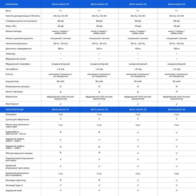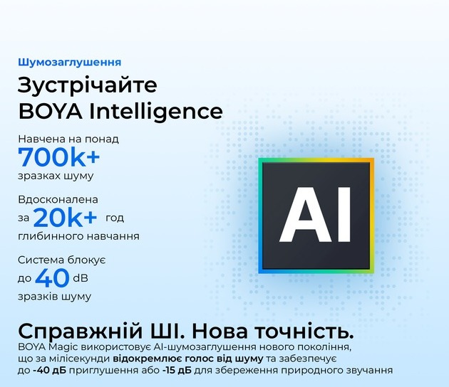 Boya Magic-02 — це не просто мікрофон, а справжній універсальний інструмент для контенту, який замінює кілька пристроїв і робить звук професійним навіть у складних умовах. Якщо ви знімаєте TikTok, YouTube, подкасти, інтерв'ю чи просто хочете чистий голос без фону — ця модель стане вашим найкращим помічником за розумні гроші.