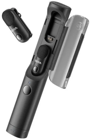 Кнопкові мікрофони BOYA MAGIC — це стильний кейс-мікрофон, всередині якого знаходяться два окремих знімних кнопкових мікрофони, один з яких може знаходитися в стіку-кейсі, а другий ви можете прикріпити до себе, і таким чином в записі буде ідеально чутно і вас, і того, у кого ви берете інтерв'ю.